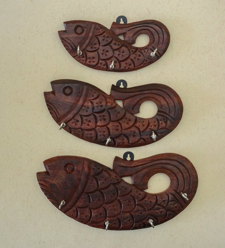 Wooden Handcrafted Key Holder, Fish Shaped Key Holder, Best for Gifts Set Of 3
