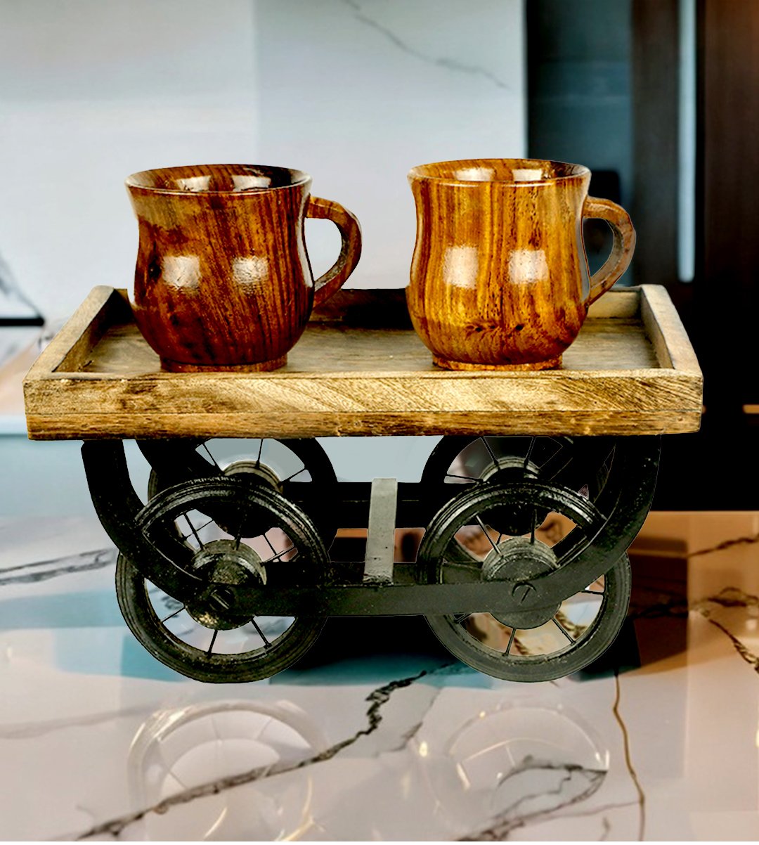 It is a mini rural bus/ cup keeper thela showpiece with big 4 wheels which is moving and it can be used to keep cups or spoons on it. Best cup keeper thela to decorate your kitchen or dining table. People who love to decorate kitchen, will love to keep this piece at their kitchen for decoration. It can be kept in your showpiece rack, dining table. Gifting material to your mothers or relatives.