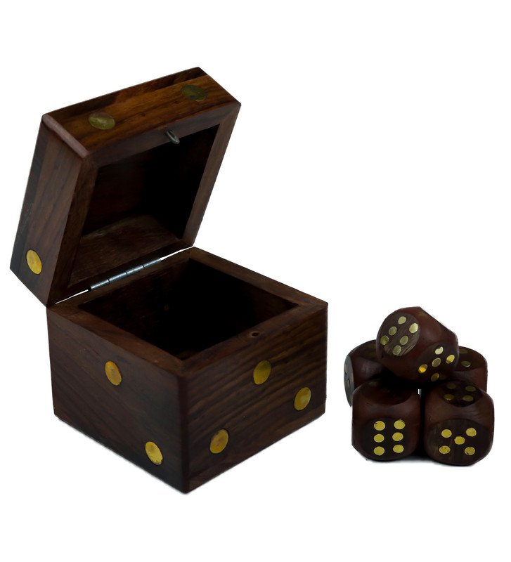 Wooden Playing Dices Set of 5 And Wooden Box, Best For Playing Games