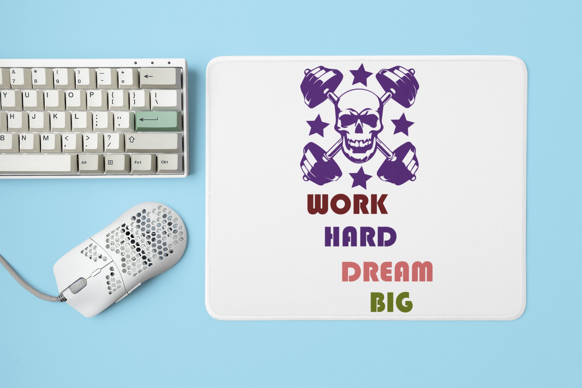 Work Hard, Dream Big, (BG Violet Skull) - Printed Mousepads For Gym Lovers