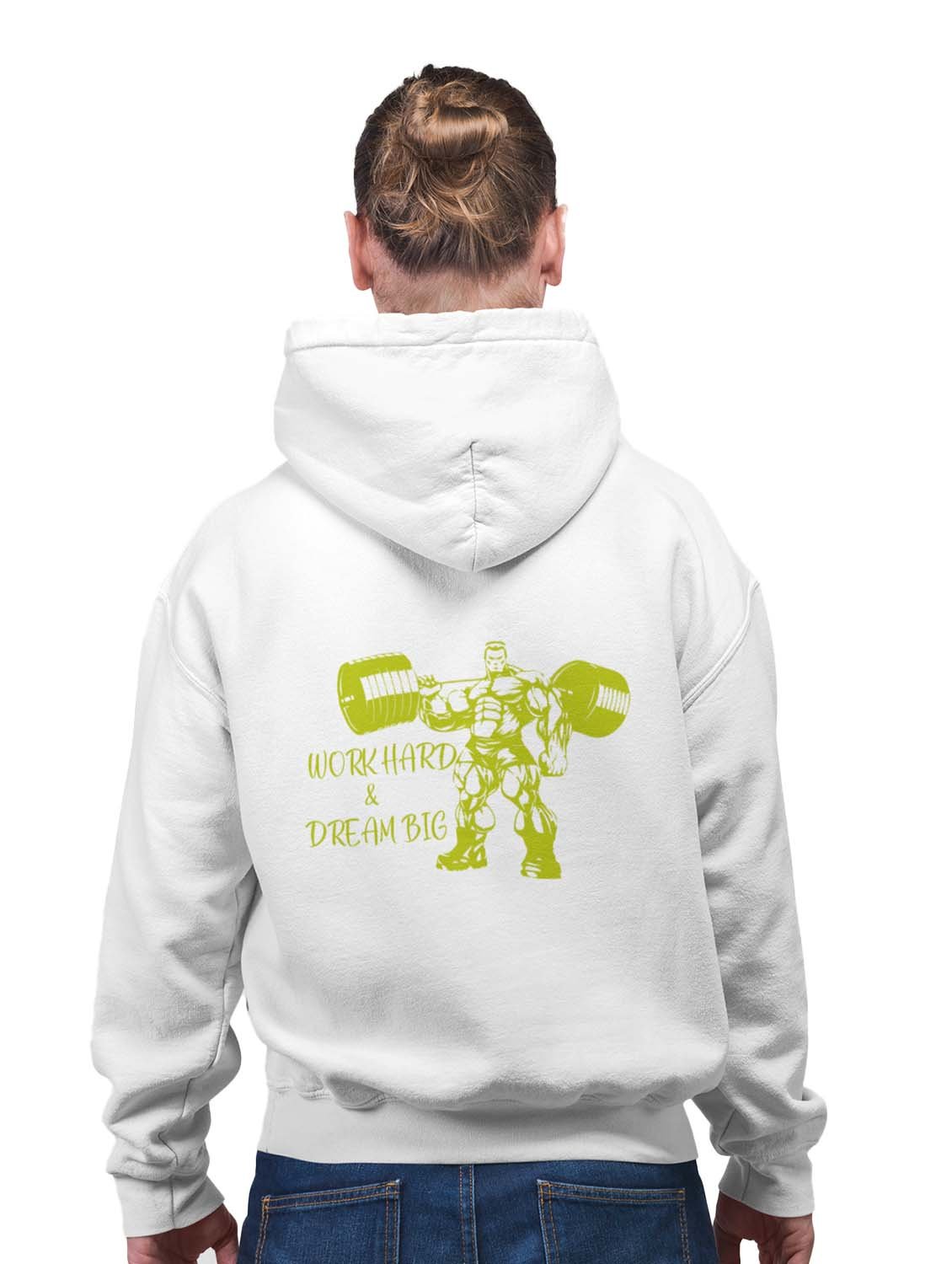 Work Hard & Dream Big printed artswear white hoodies for winter casual wear specially for Men