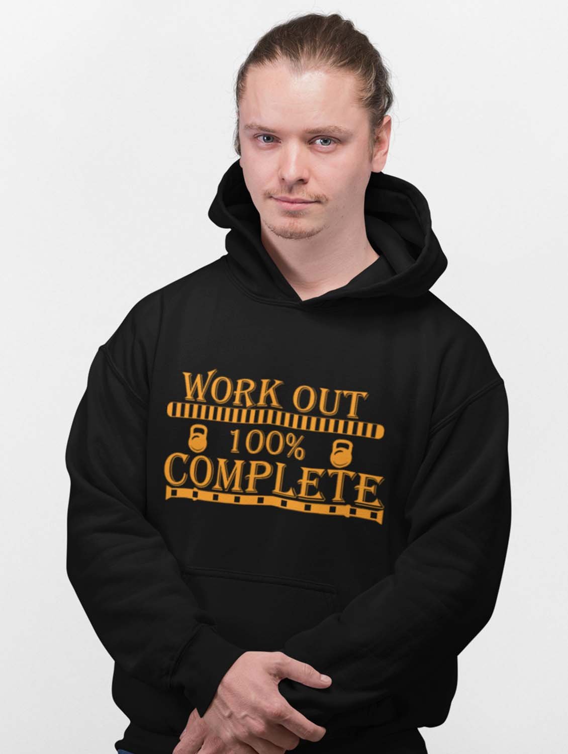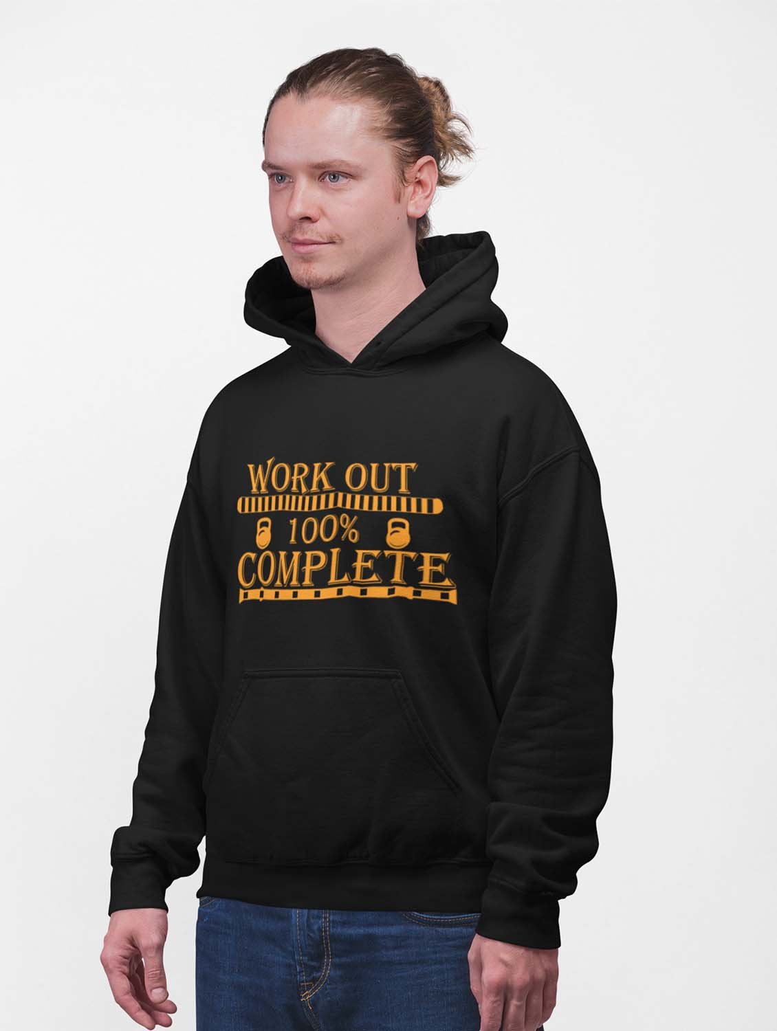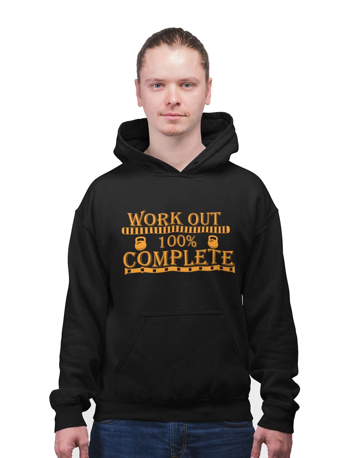 Workout 100% Complete (BG Yellow)printed artswear black hoodies for winter casual wear specially for Men
