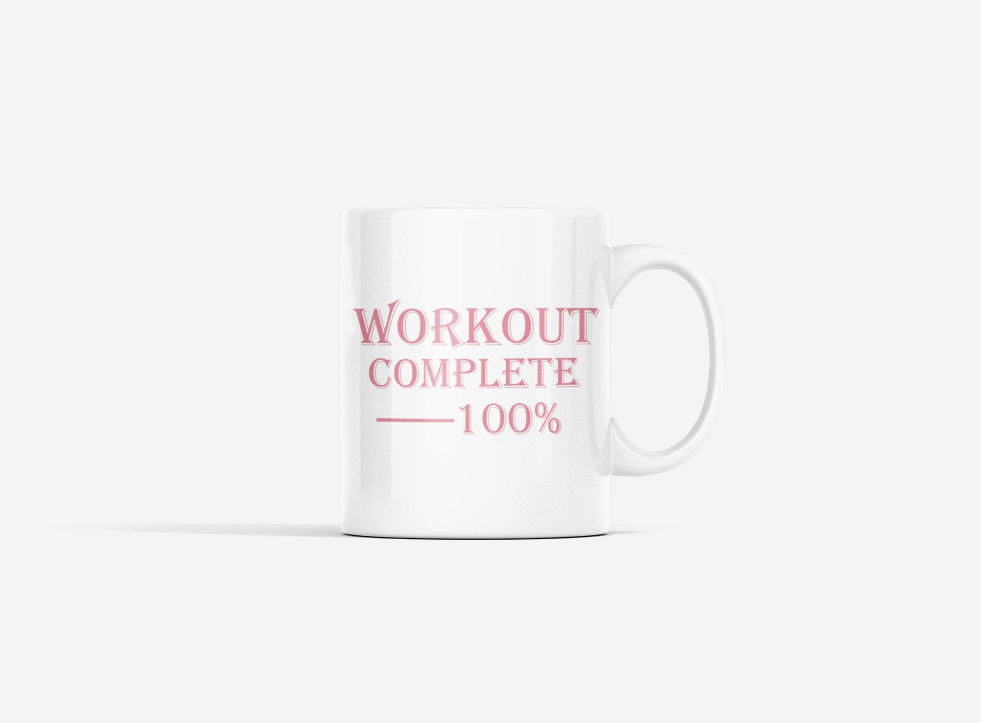 Workout Complete 100%, (BG Pink) - gym themed printed ceramic white coffee and tea mugs/ cups for gym lovers