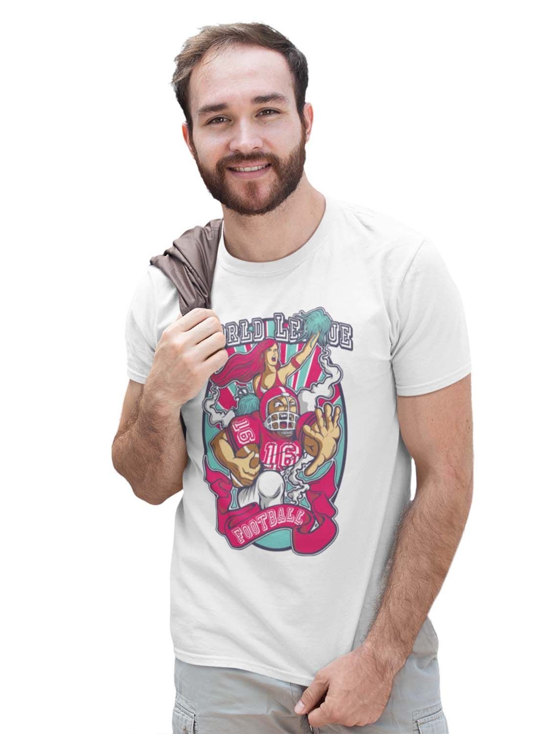 World Football League Round Neck Cotton Half Sleeved T-Shirt with Printed Graphics