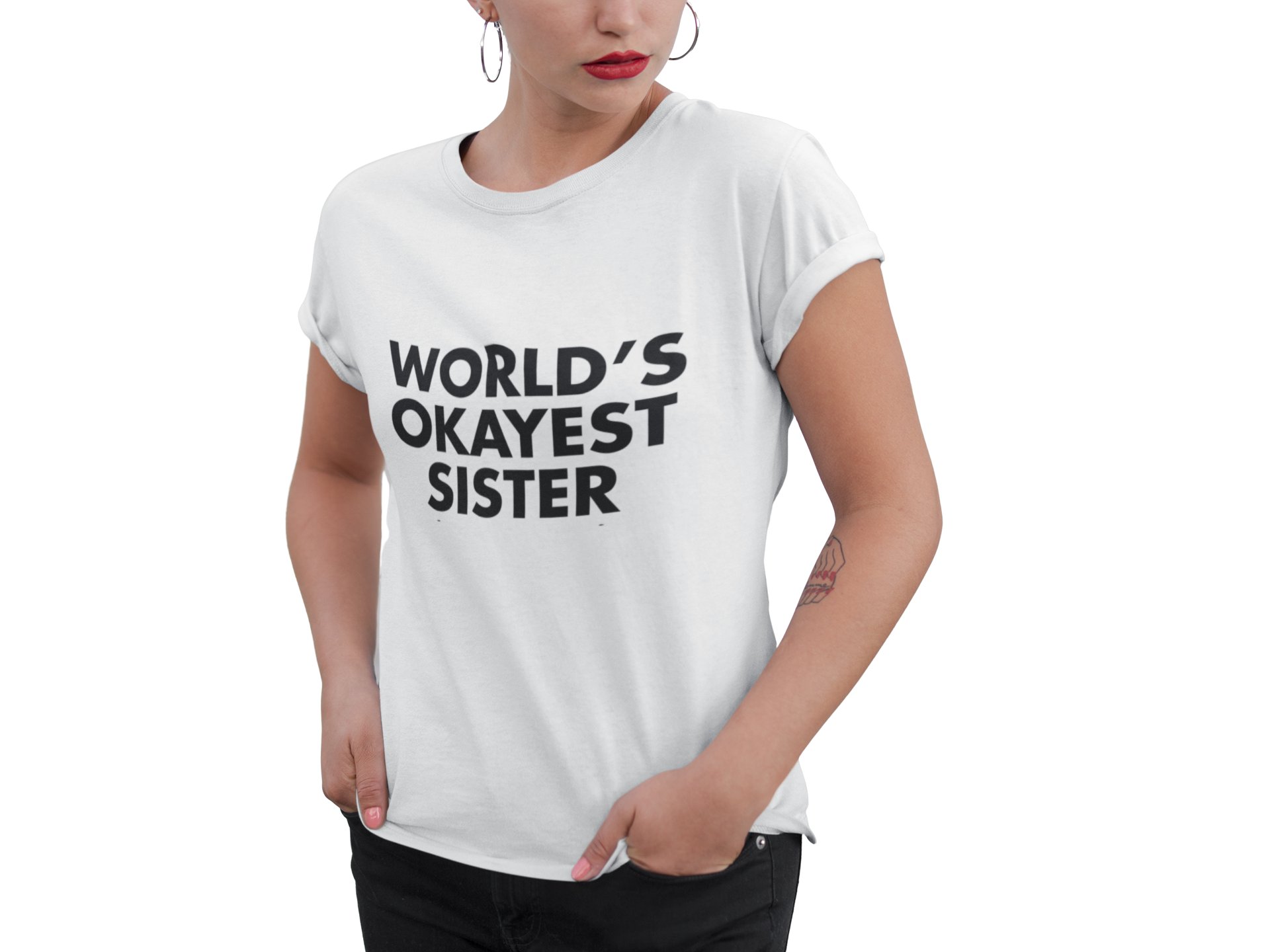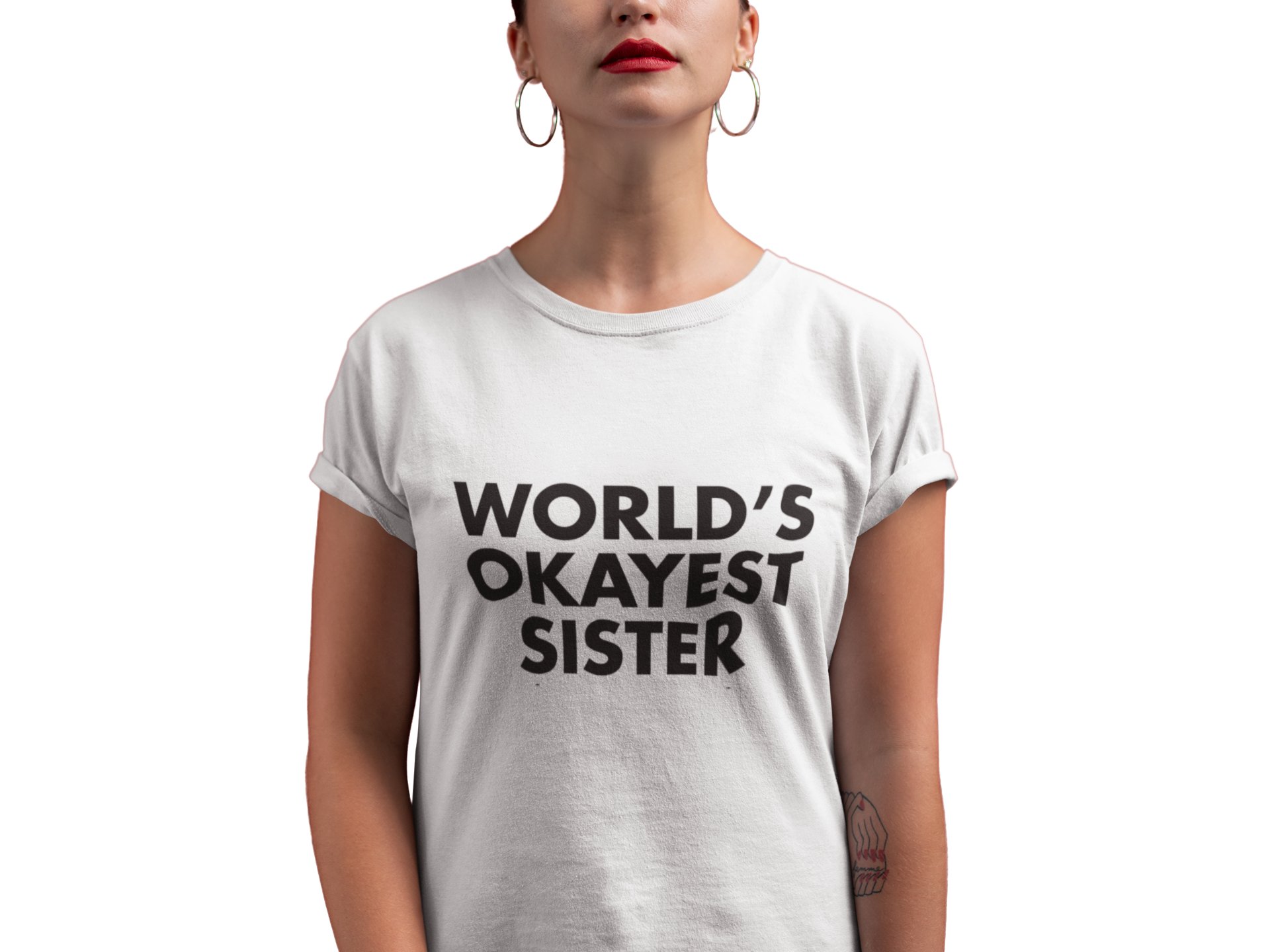 World's okayest sister-printed family themed cotton blended half-sleeve t-shirts made for women (white)