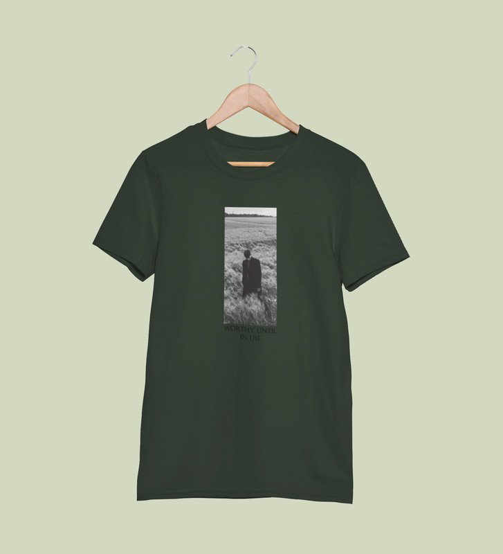 Worthless Life, Cityscape Elegance: Green Men's Oversized Tee with Captivating Front Graphic