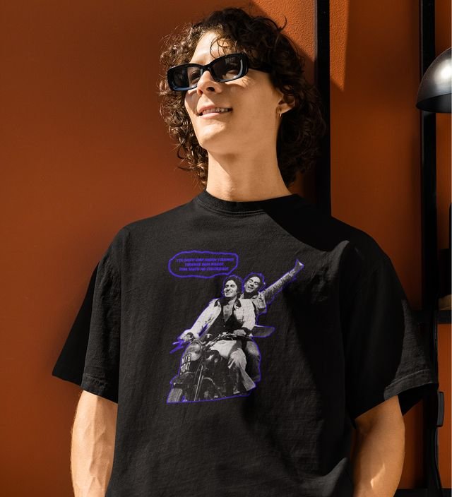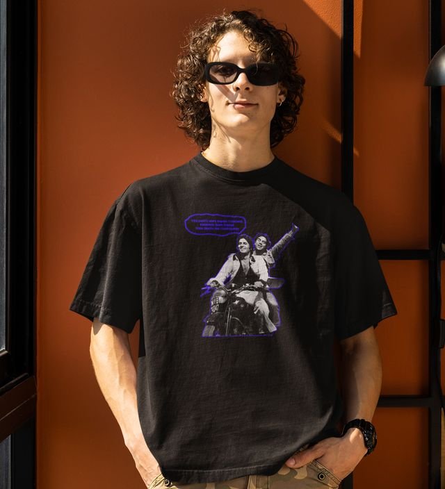 Ye Dostiiii!!!! Black Round Neck Cotton Half Sleeved Men T-Shirt with Printed Graphics