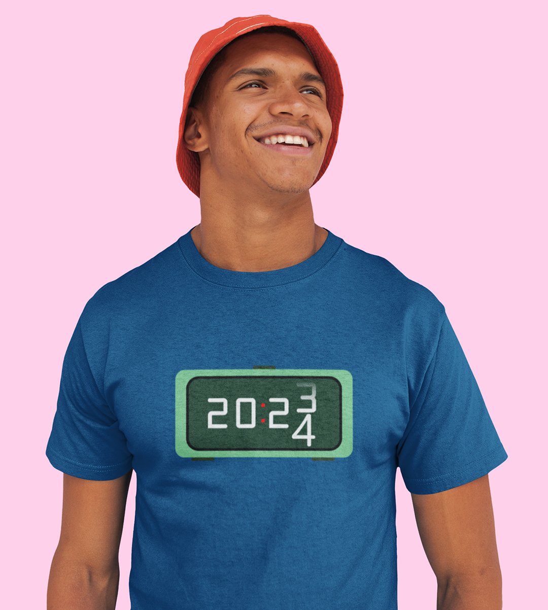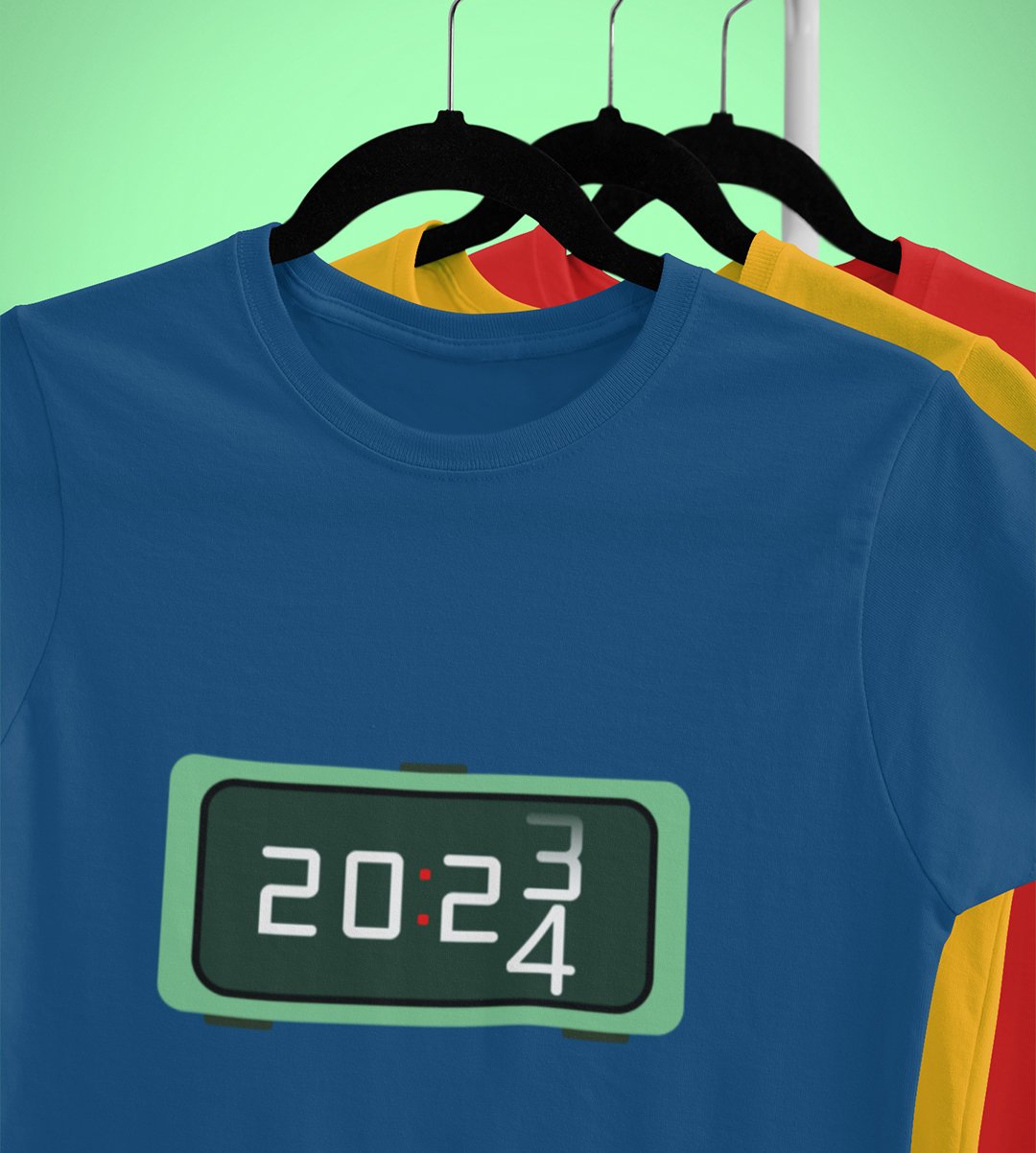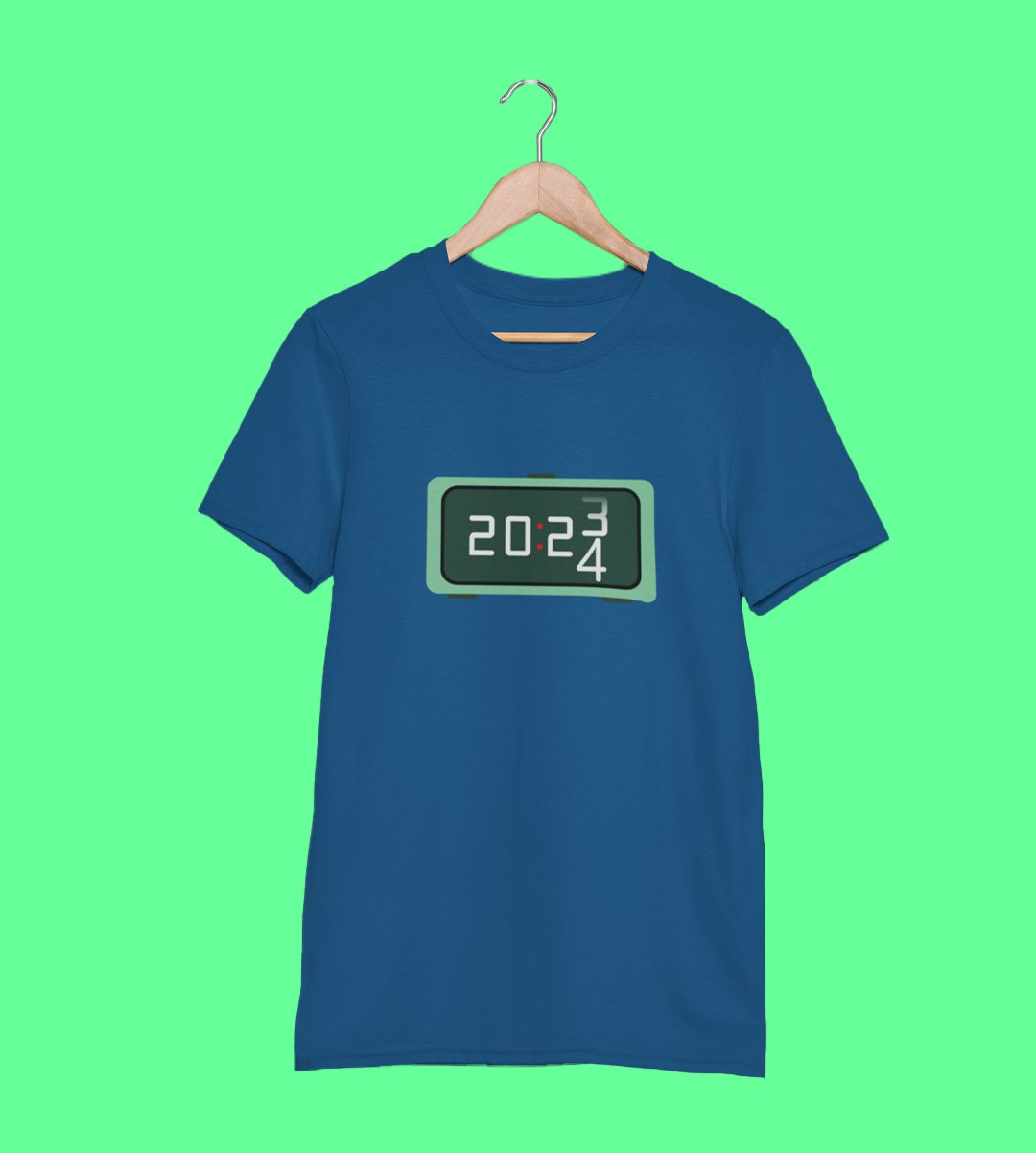Year Changing Clock : New Year Printed T-shirt (Blue) Best Gift For Secret Santa