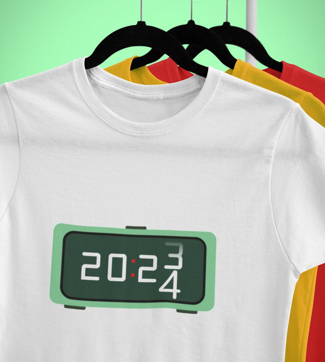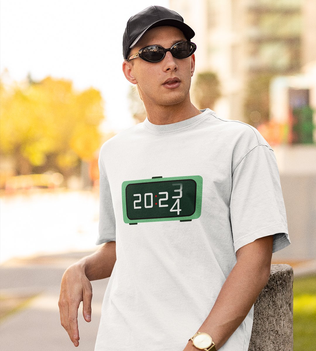 Year Changing Clock : New Year Printed T-shirt (White) Best Gift For Secret Santa