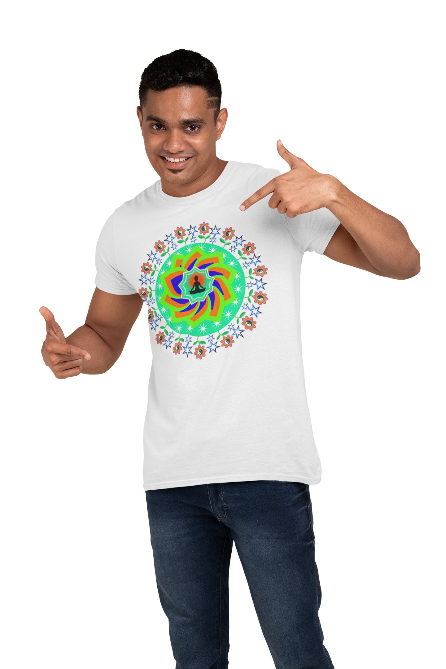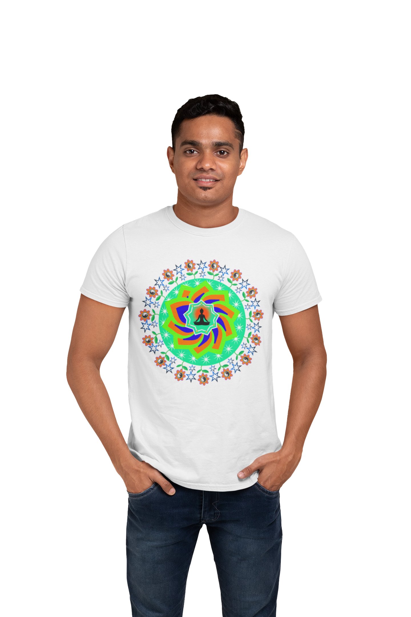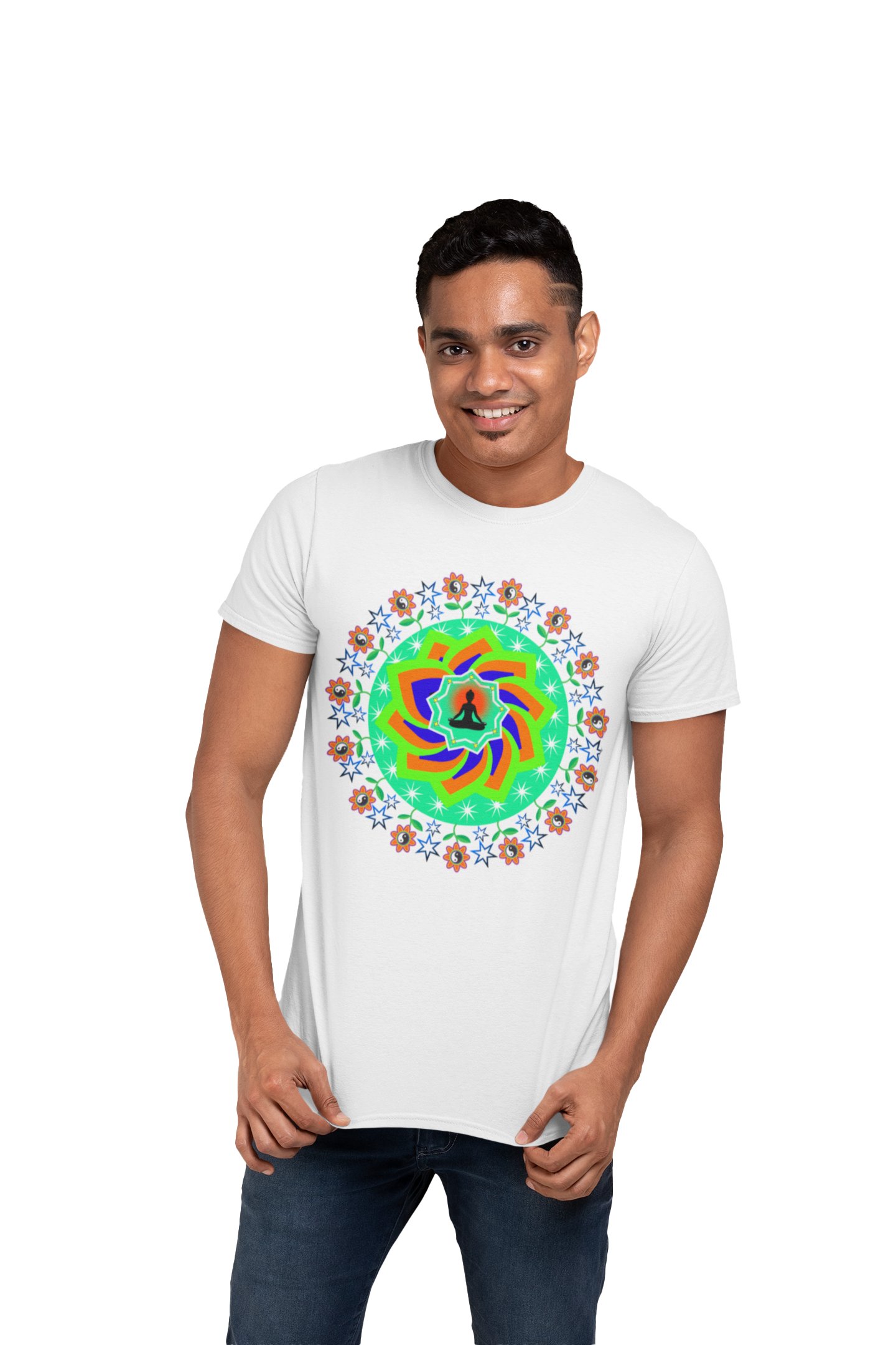 Yoga energy chakra - White - Comfortable Yoga T-shirts for Yoga Printed Men's T-shirts (Small, White)
