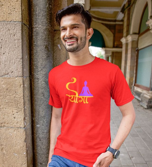 Yoga Is Enough Red Round Neck Cotton Half Sleeved Men T-Shirt with Printed Graphics