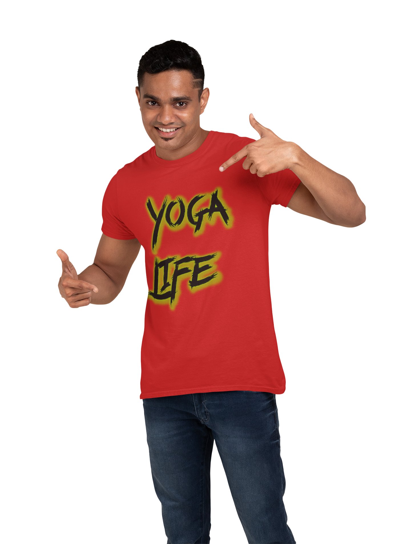 Yoga Life - Red - Comfortable Yoga T-shirts for Yoga Printed Men's T-shirts (Medium, Red)