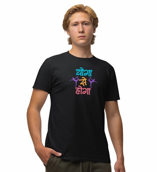 Yoga Se Hoga! Black Round Neck Cotton Half Sleeved Men T-Shirt with Printed Graphics