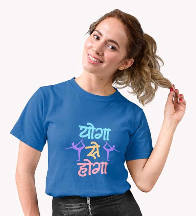 Yoga Se Hoga! Blue Round Neck Cotton Half Sleeved Women T-Shirt with Printed Graphics