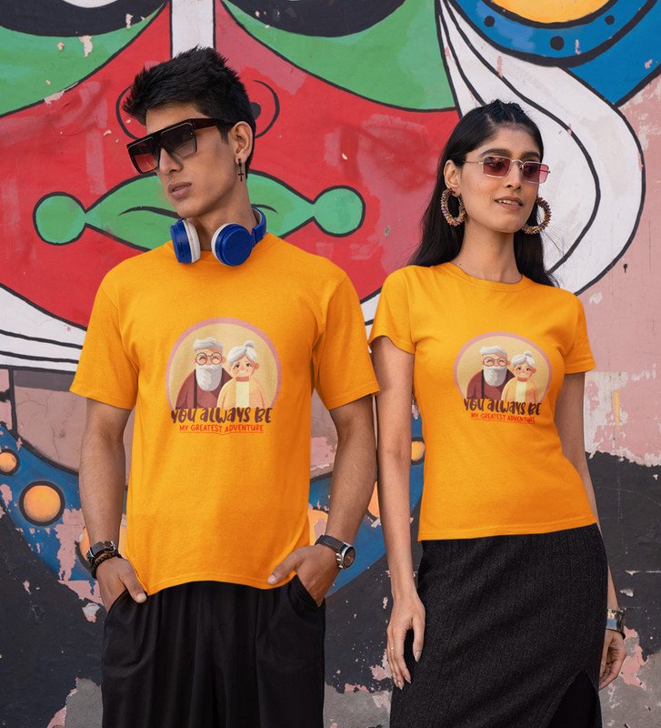 You Are My Greatest Adventure Printed (Yellow) T-shirts For Couple