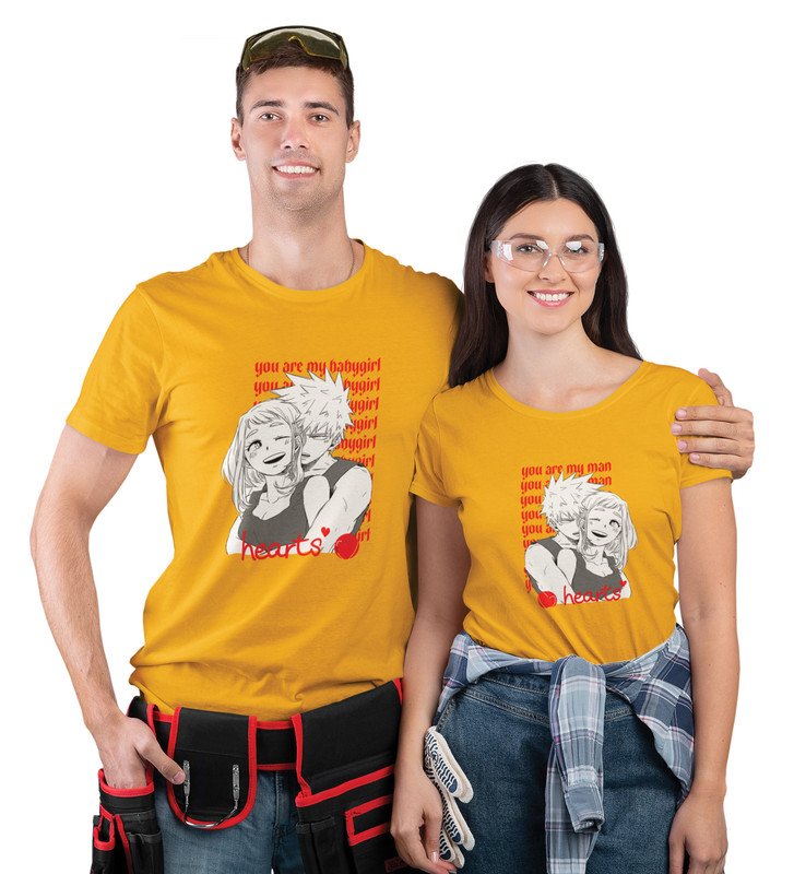 You Are My Man/You Are My Baby Girl Printed (Yellow) T-shirts For Couples