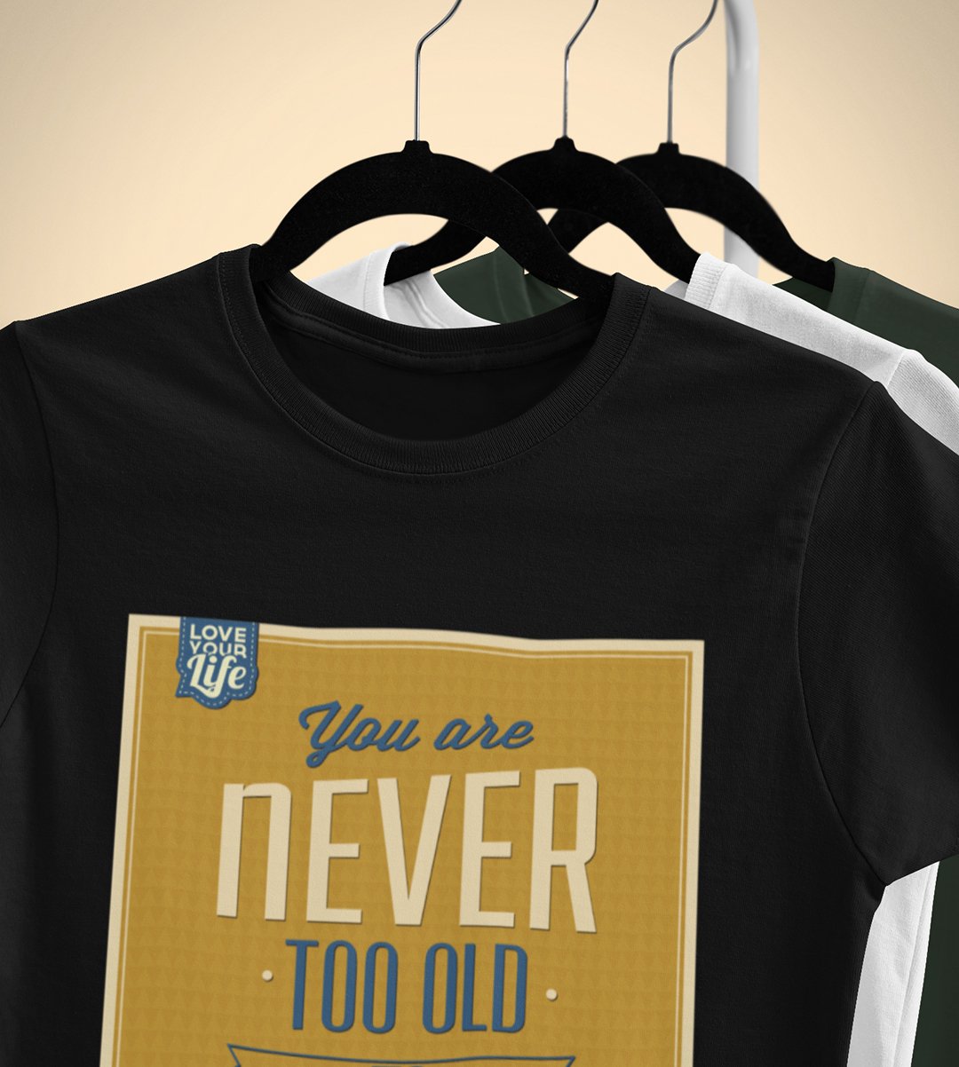 You are never too old to learn (yellow) -round crew neck cotton tshirts for men