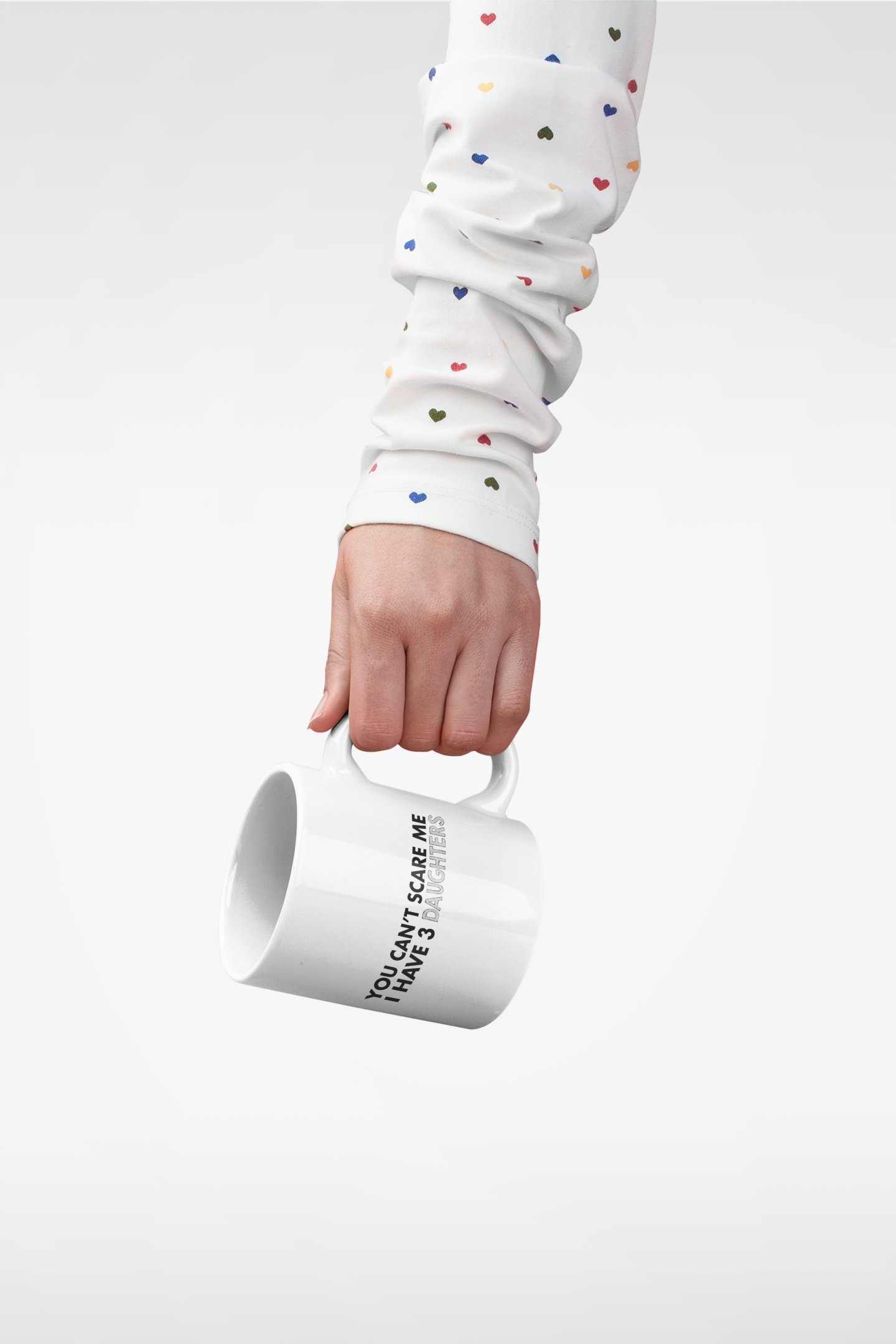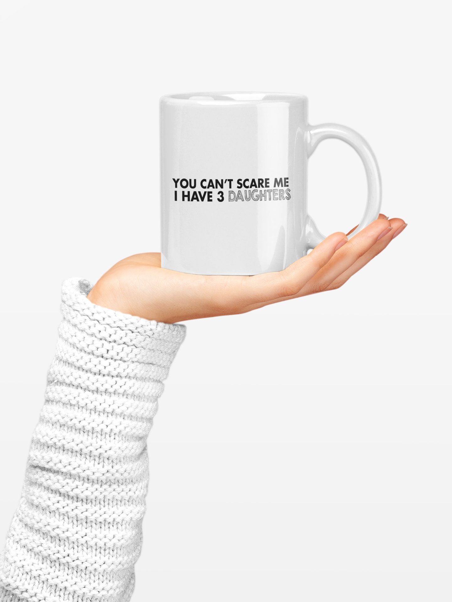 You Can't scare me I have 3 Daughters - family themed printed ceramic white coffee and tea mugs/ cups