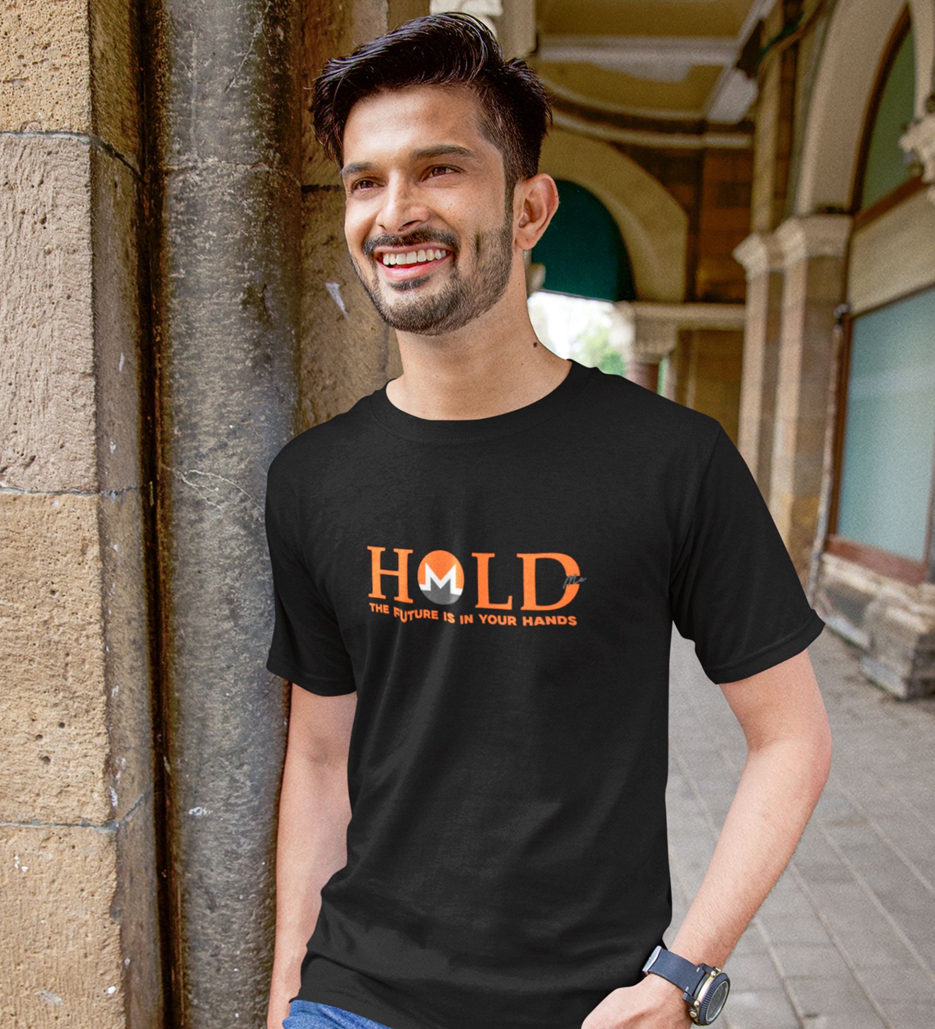 You Hand Your Future Wings Black Round Neck Cotton Half Sleeved Men's T Shirt with Printed Graphics