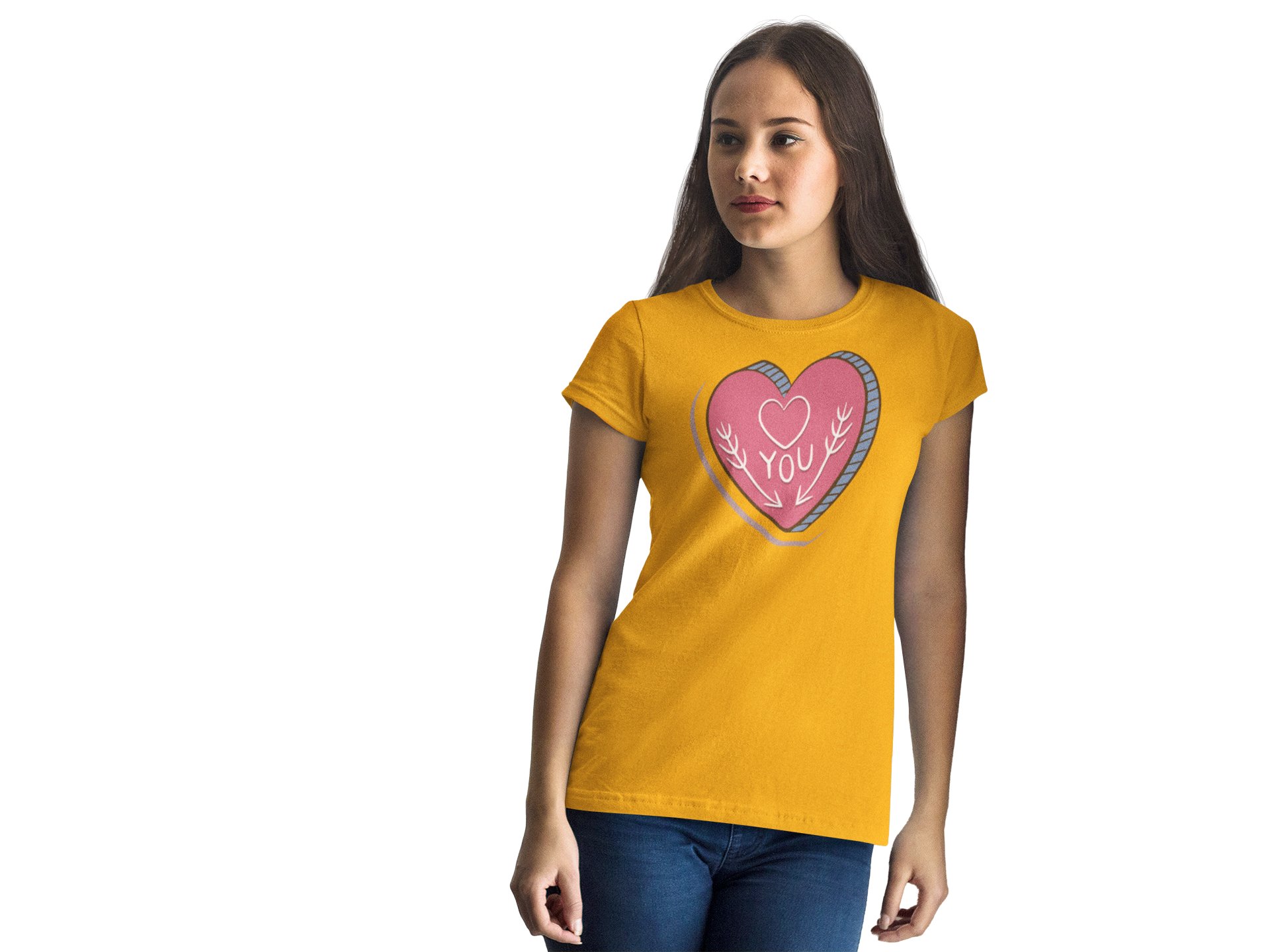 You Text In Pink Heart DesignsPrinted Yellow T-Shirts