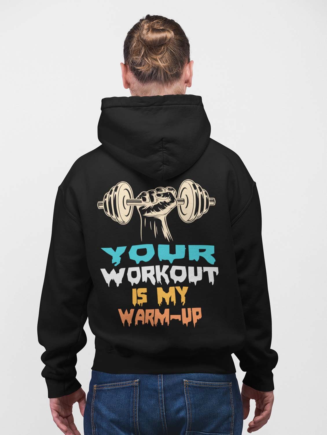 Your Workout Is My Warm-Up, (BG Yellow, Blue & Orange)printed activewear black hoodies for winter casual wear specially for Men
