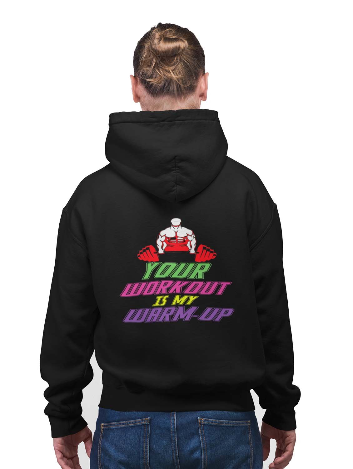 Your Workout Is My Warm-Up printed artswear black hoodies for winter casual wear specially for Men