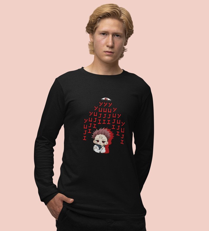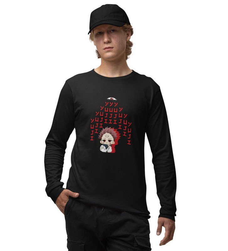 Yuji Itadori Printed Cotton Black Full Sleeves Tshirt For Mens and Boys