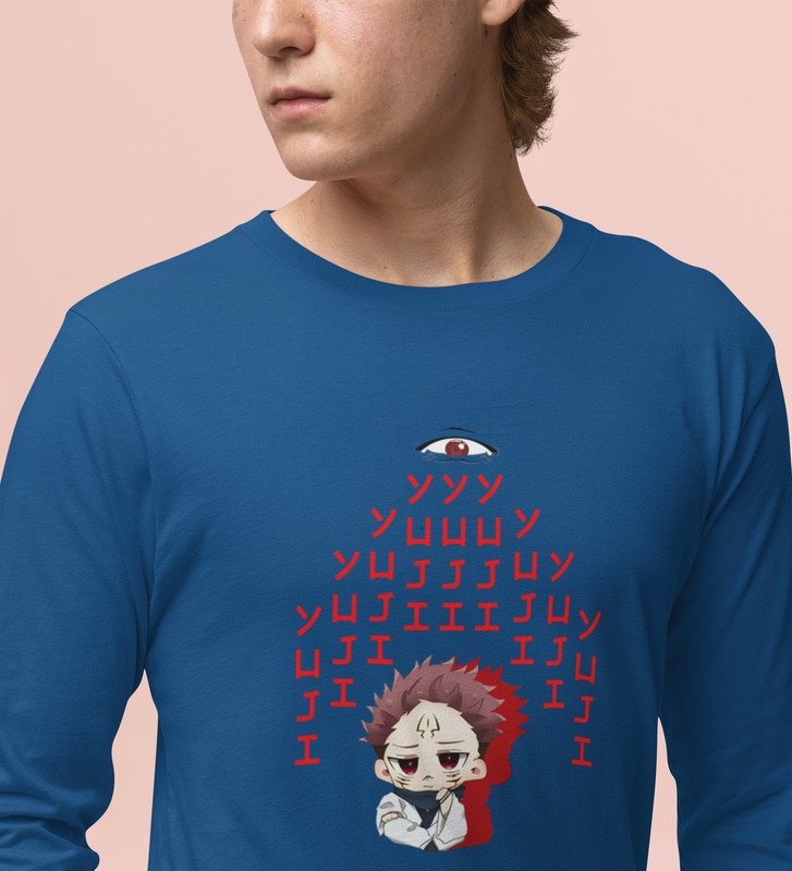 Yuji Itadori Printed Cotton Blue Full Sleeves Tshirt For Mens and Boys