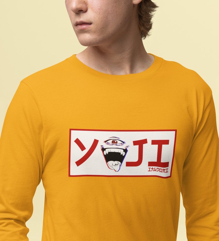 Yuji Itadori Printed Cotton Yellow Full Sleeves Tshirt For Mens and Boys