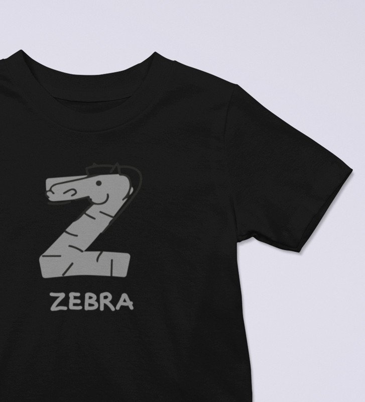 Zigzag Zebra,Boys Round Neck Printed Blended Cotton Tshirt (Black)
