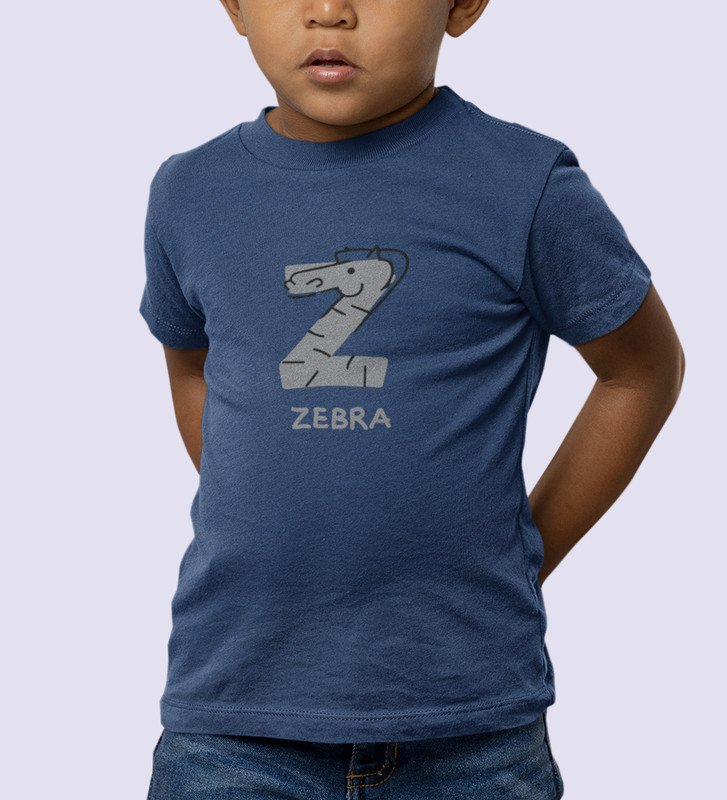 Zigzag Zebra,Boys Round Neck Printed Blended Cotton Tshirt (Navy blue)