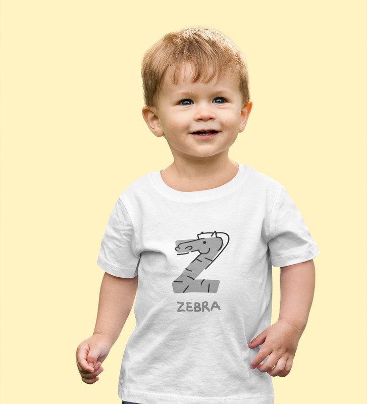 Zigzag Zebra,Boys Round Neck Printed Blended Cotton tshirt (white)