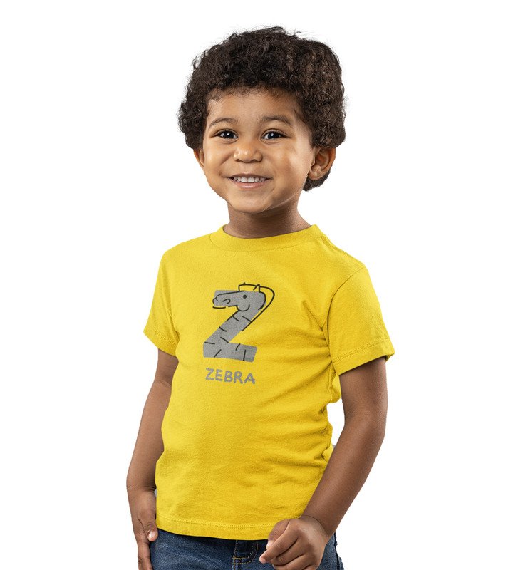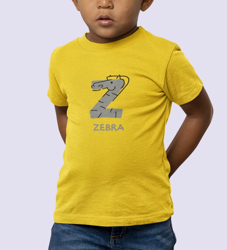 Zigzag Zebra,Boys Round Neck Printed Blended Cotton Tshirt (Yellow)