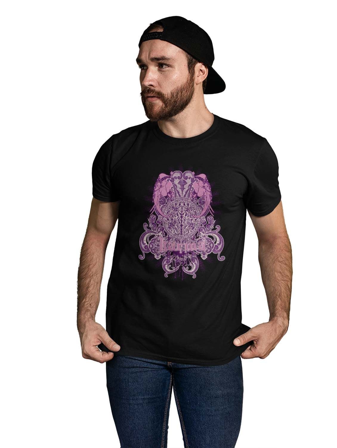 The Power Of Karma Black Round Neck Cotton Half Sleeved T-Shirt with Printed Graphics