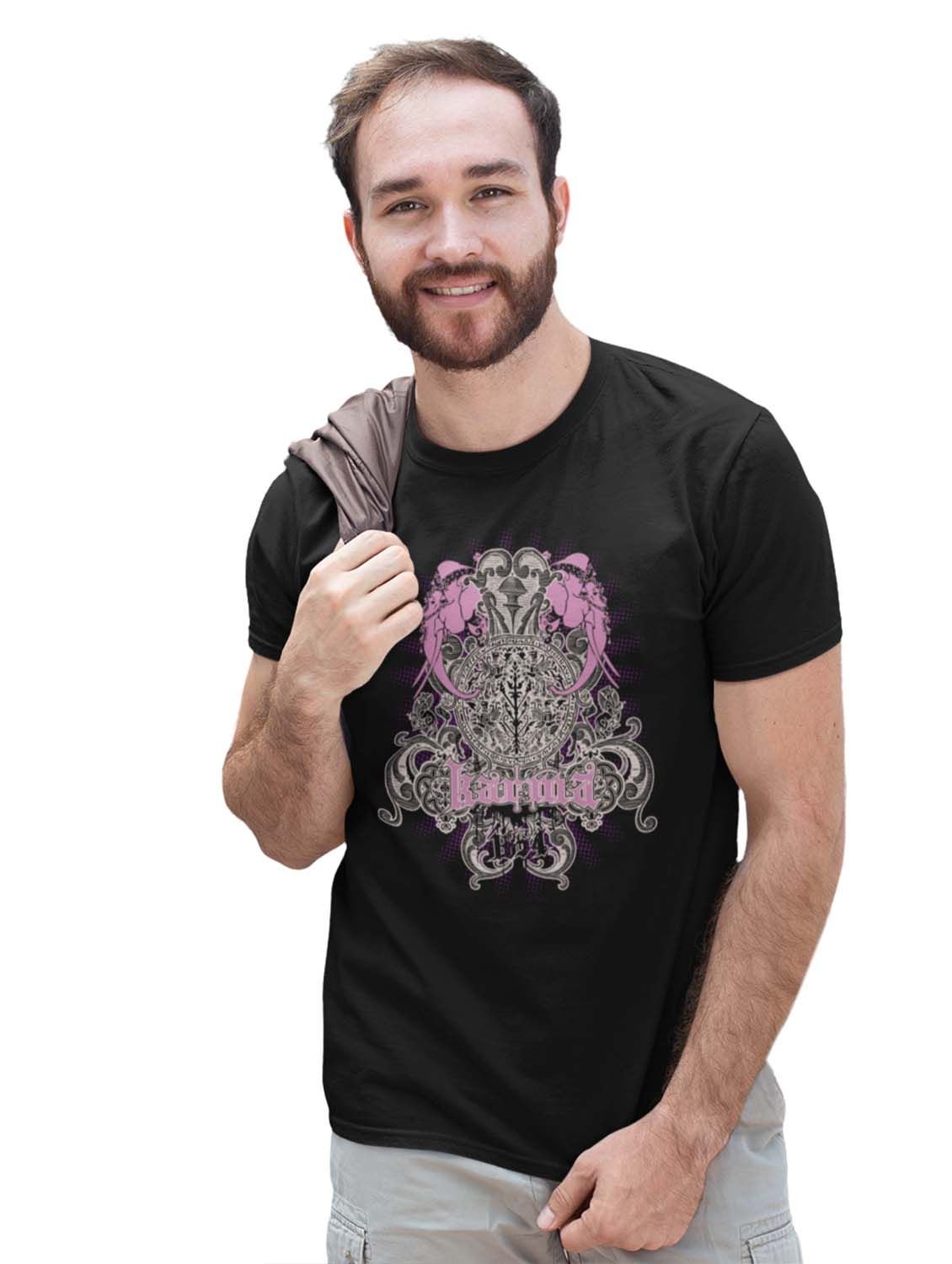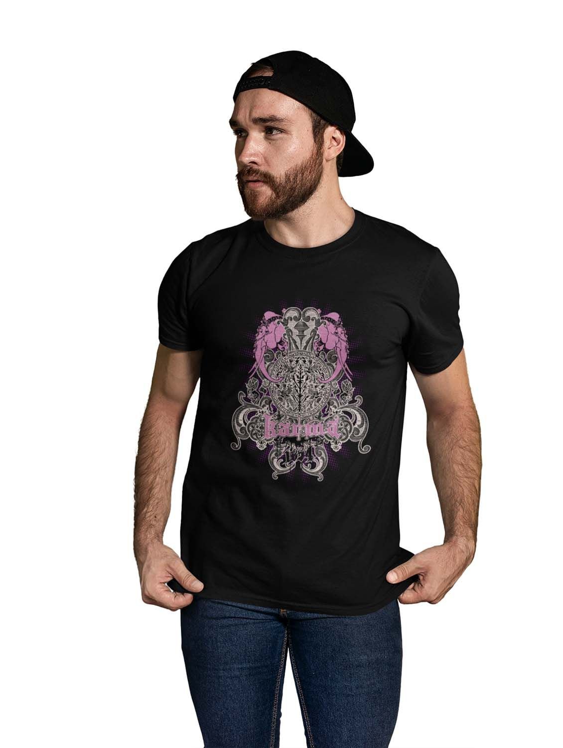 The Karma Black Round Neck Cotton Half Sleeved T-Shirt with Printed Graphics