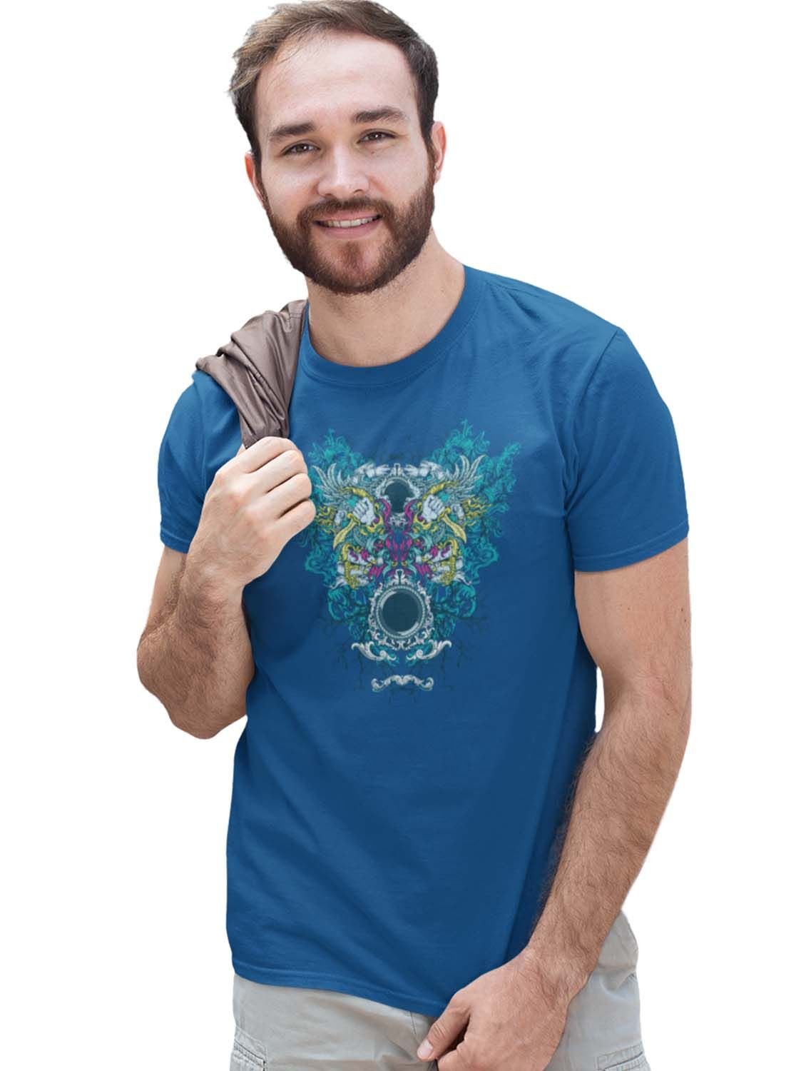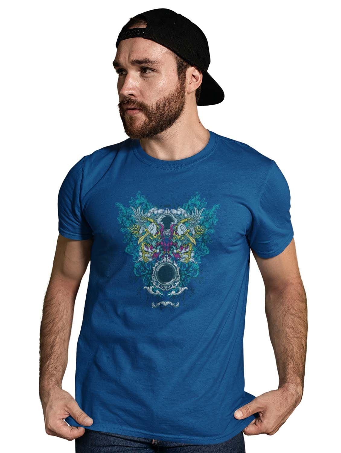 Outlams - Blue Round Neck Cotton Half Sleeved T-Shirt with Printed Graphics