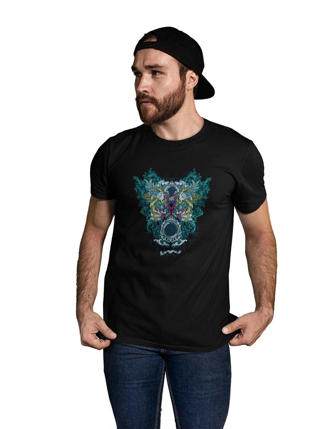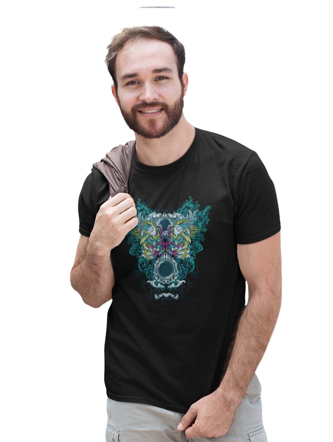 Mirror Monster Black Round Neck Cotton Half Sleeved T-Shirt with Printed Graphics