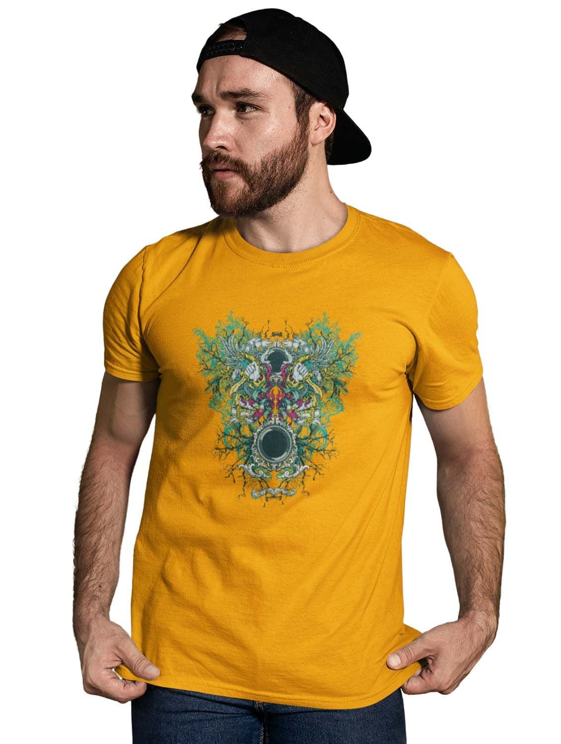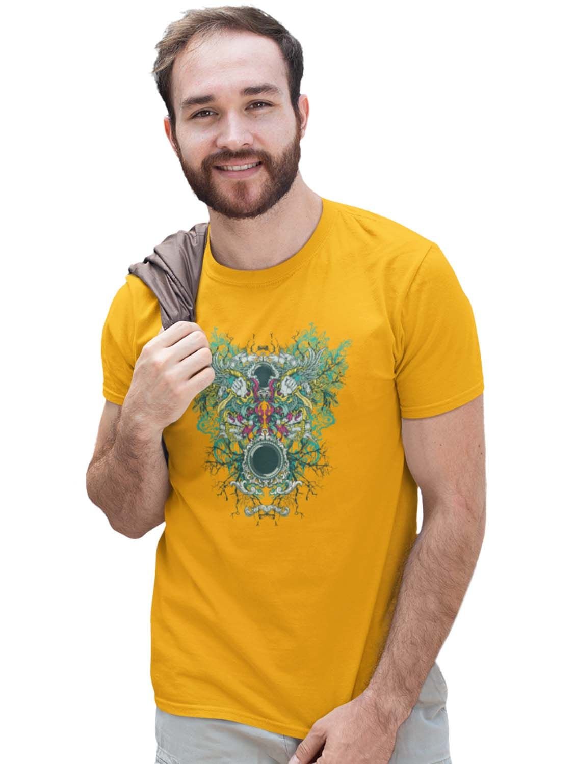Mirror Monster Yellow Round Neck Cotton Half Sleeved T-Shirt with Printed Graphics