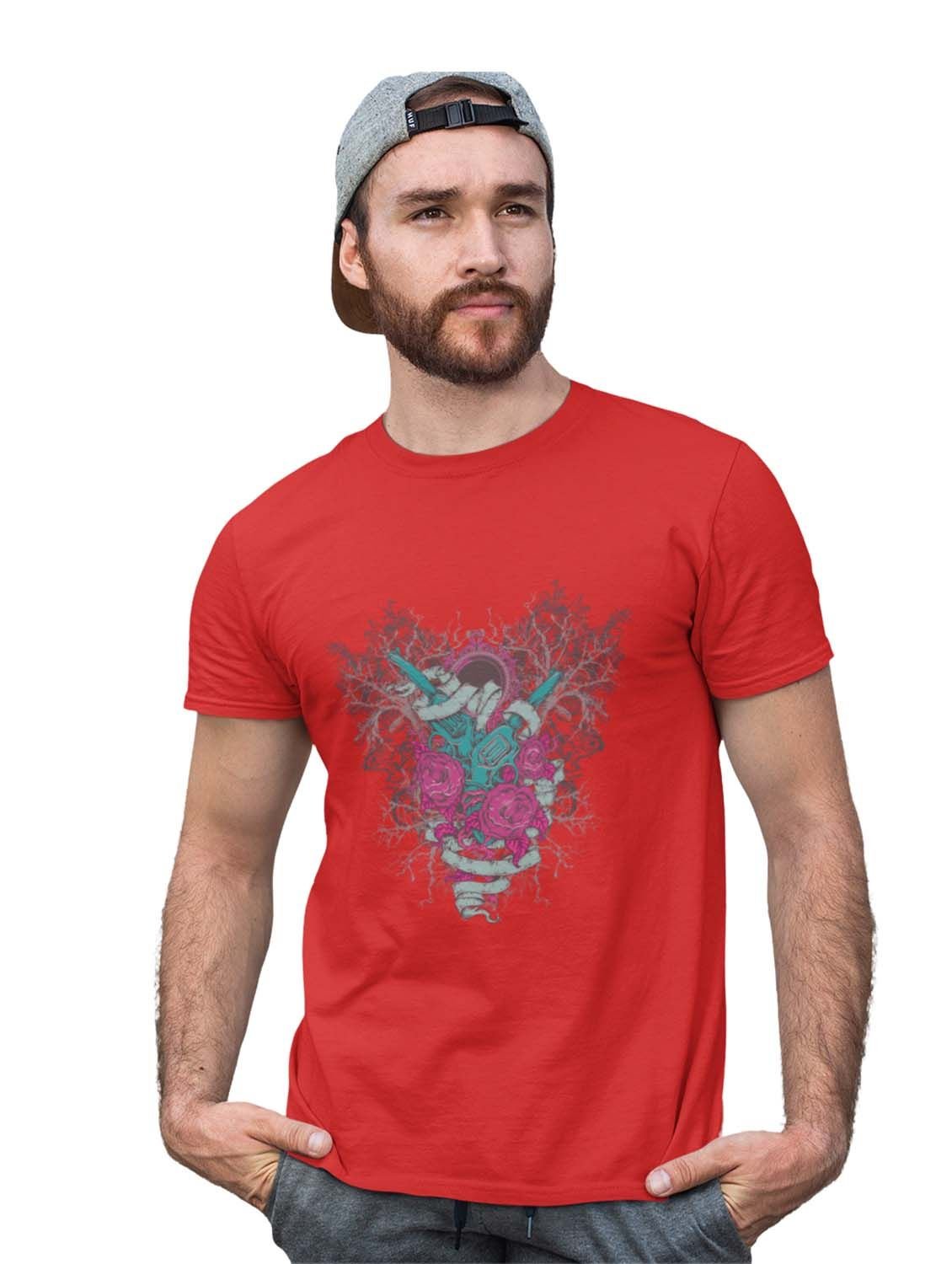 Mirror Monster Red Round Neck Cotton Half Sleeved T-Shirt with Printed Graphics