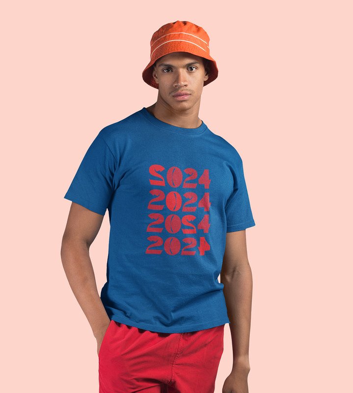 2024 Has Come Blue Men Printed T-shirt For Mens Boys