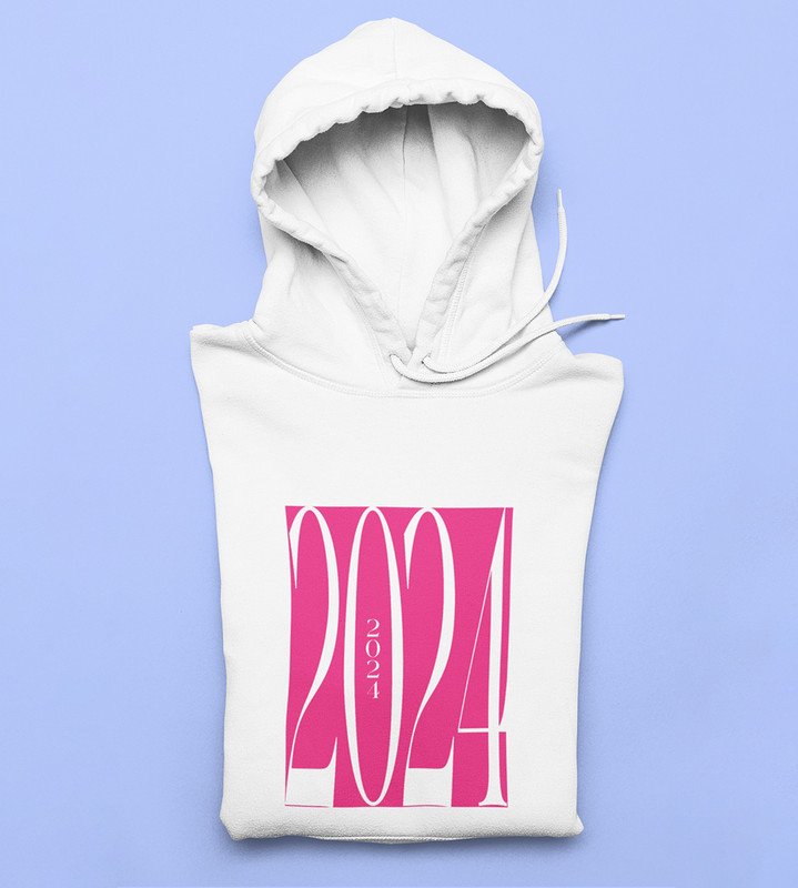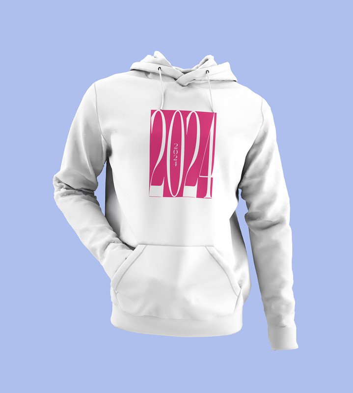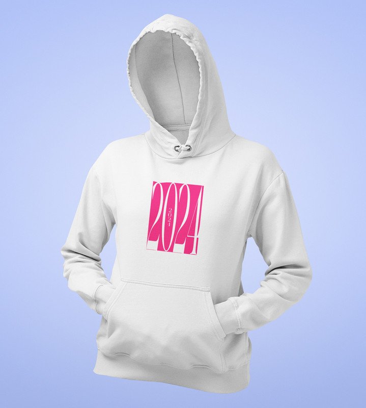 2024 New Year, White Printed Hoodies For Mens On New Year Theme Best Gift For New Year