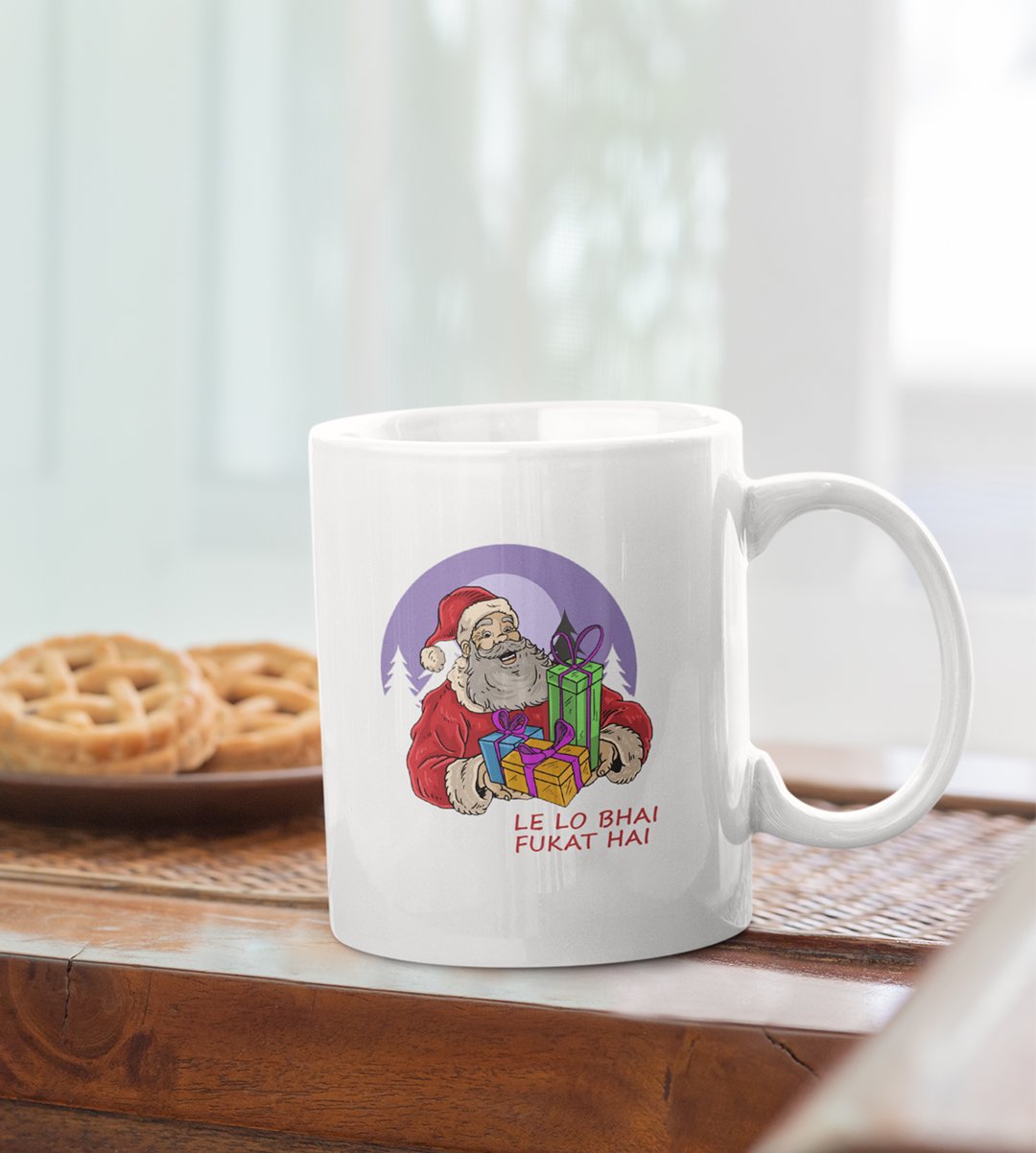Ho-Ho-Hilarious: 'Lelo Bhai, Fukat Hai!' Santa Meme Coffee Mug