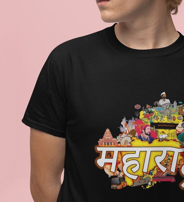 Step into the spirit of Maharashtra with our "Maharashtra: Land of Maratha" graphic printed tee. Celebrating the vibrant festivals, rich traditions, and cultural pride of the Maratha legacy this black T-shirt is more than just style, it's heritage you can wear.