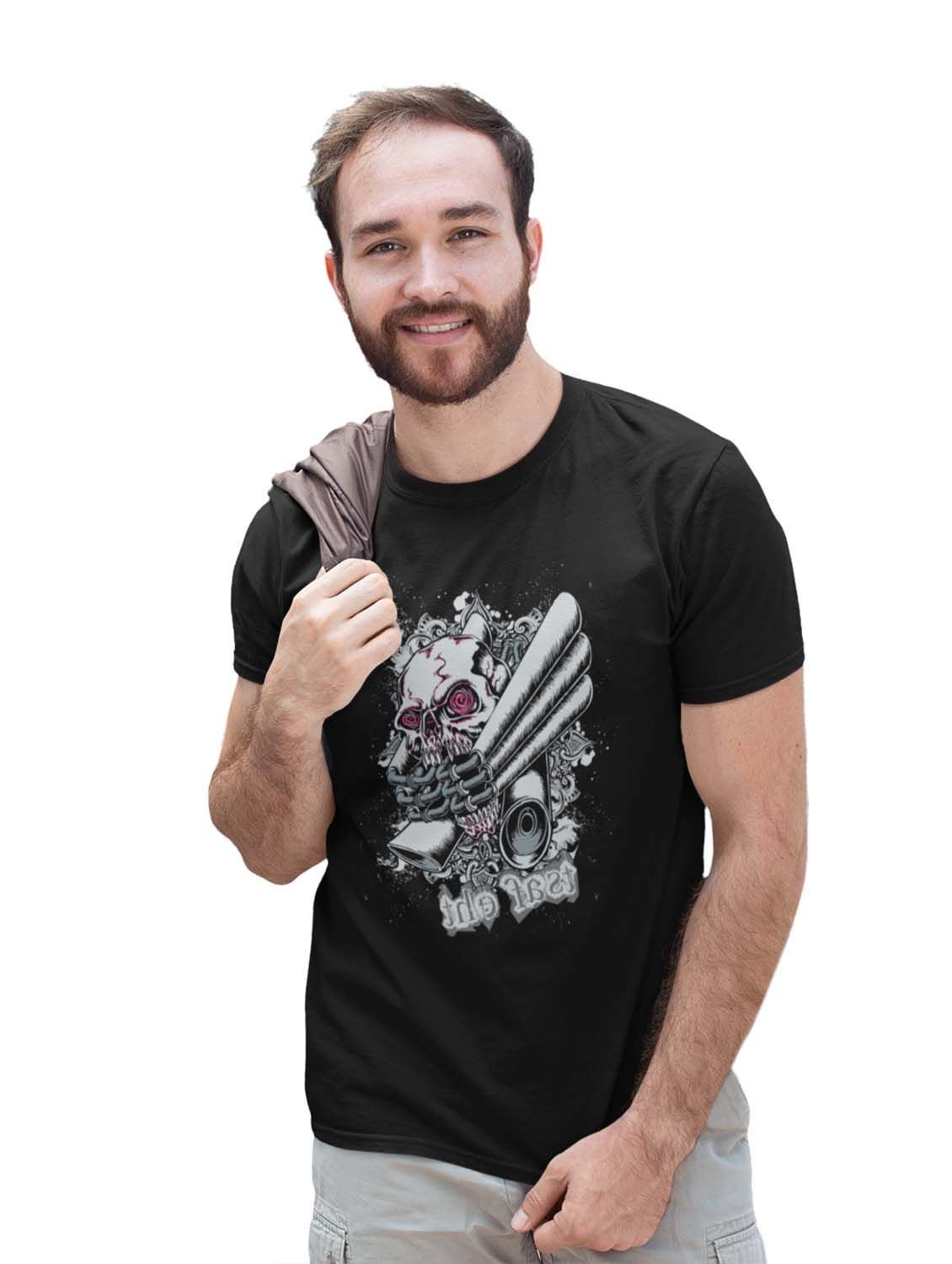 The Deathheads Black Round Neck Cotton Half Sleeved T-Shirt with Printed Graphics