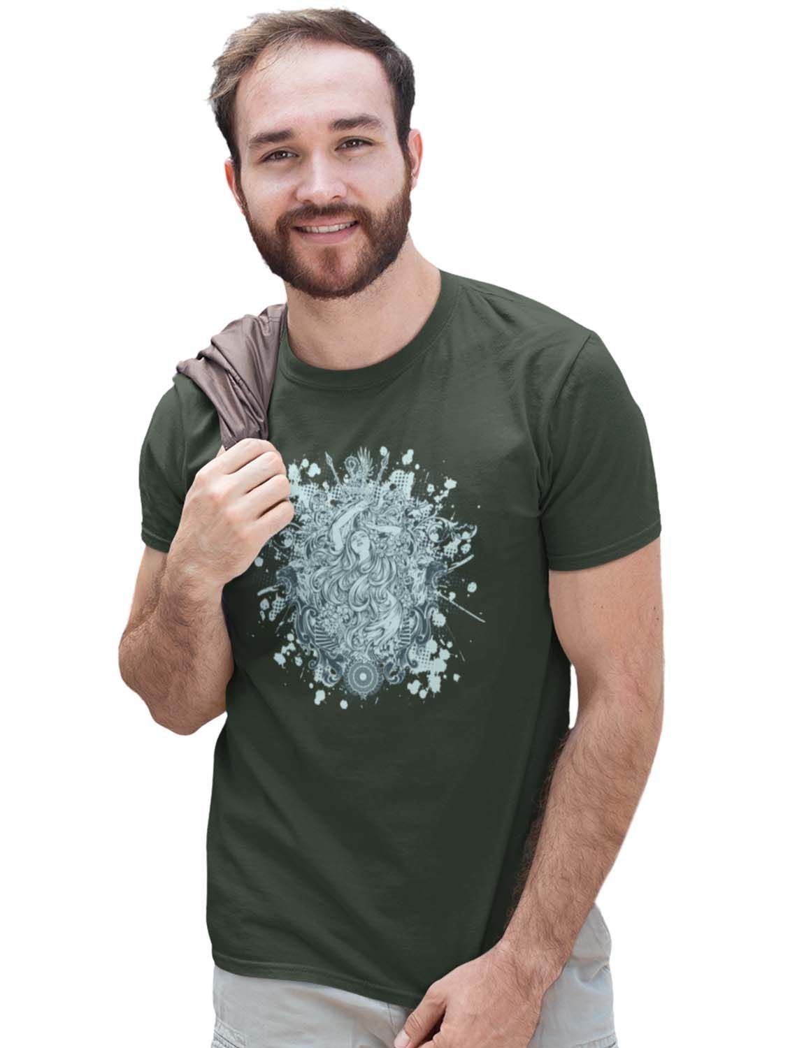 The Cursed Mermaid Green Round Neck Cotton Half Sleeved T-Shirt with Printed Graphics