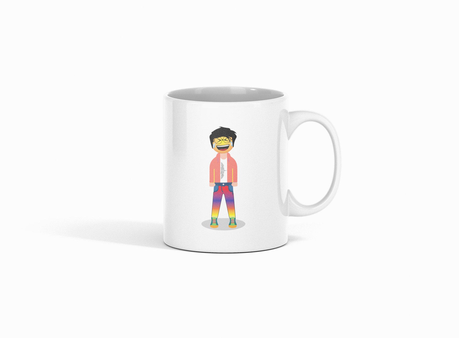 A Young Laughing Emoji- emoji printed ceramic white coffee and tea mugs/ cups for emoji lover people