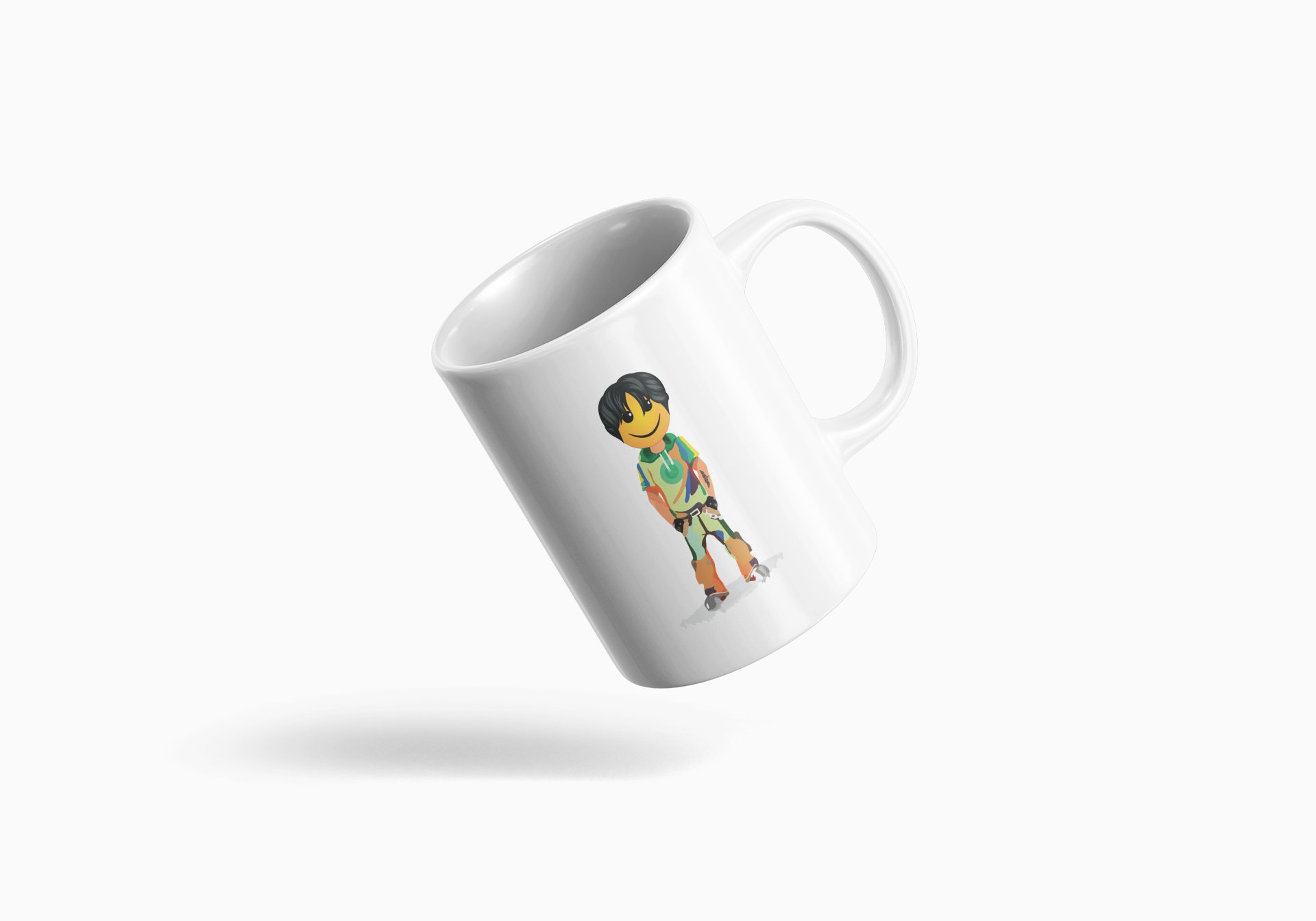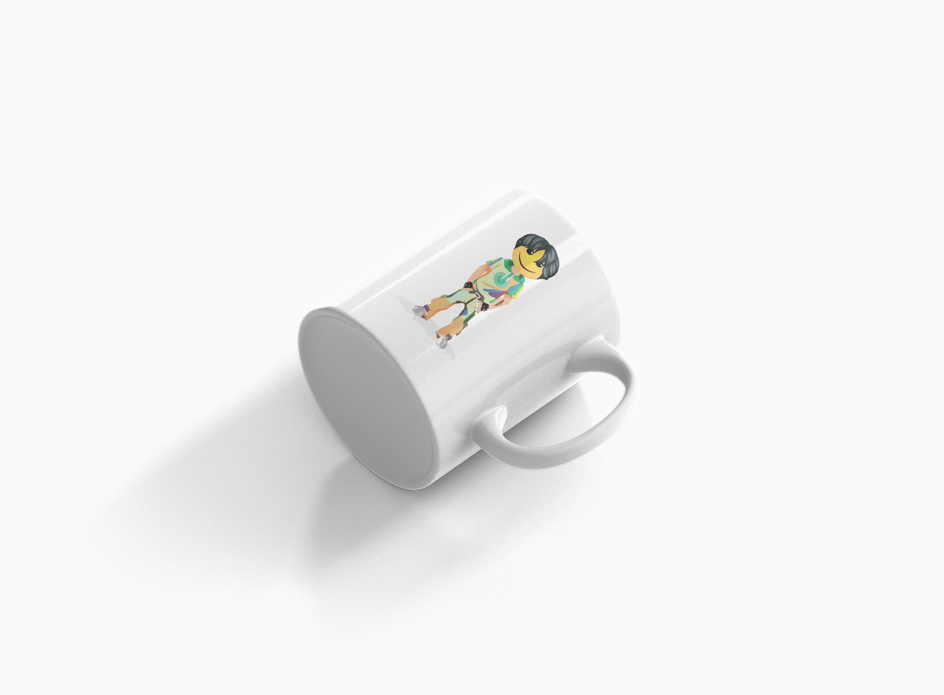 A Young Standing Emoji Boy- emoji printed ceramic white coffee and tea mugs/ cups for emoji lover people