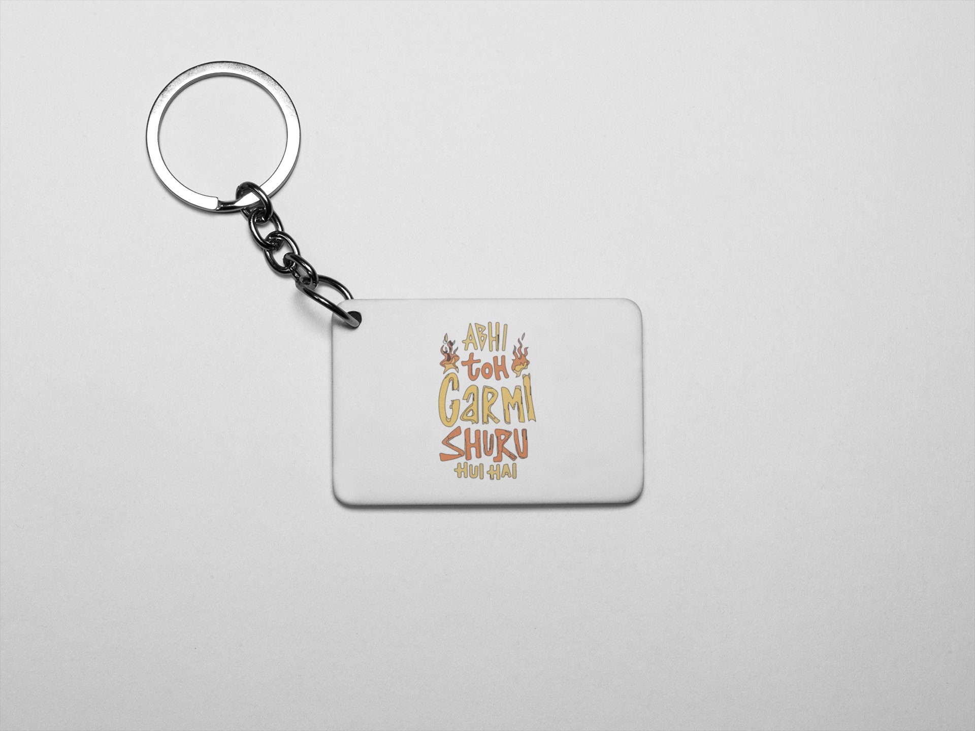 Abhi Toh Garmi Shuru Hui Hai .. -acryllic printed white keychains/ keyrings for bollywood lover people(Pack Of 2)
