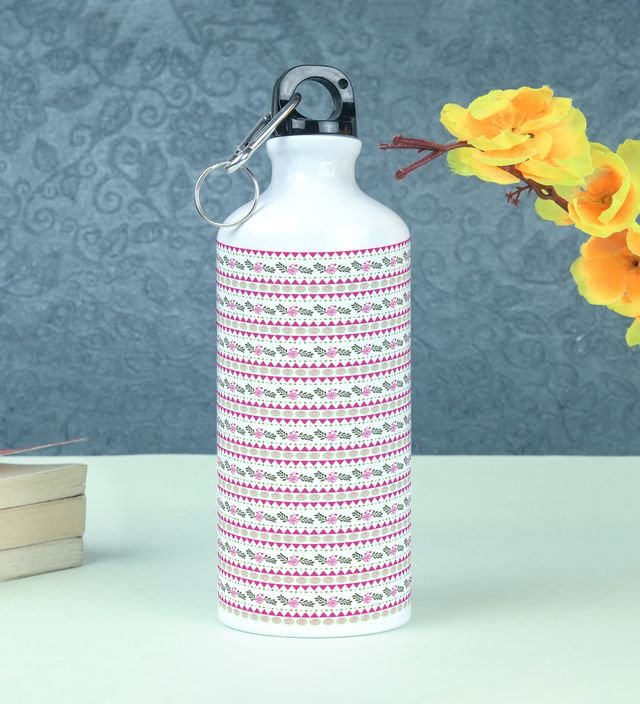 Abstract Floral and Geometric Lines Graphic Printed Aluminium Water Bottle 600ml