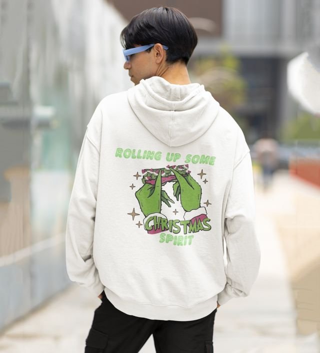Actively Rolling Up Christmas Items in Joyful Preparation for the Holiday Season Printed White Cotton Hoodie